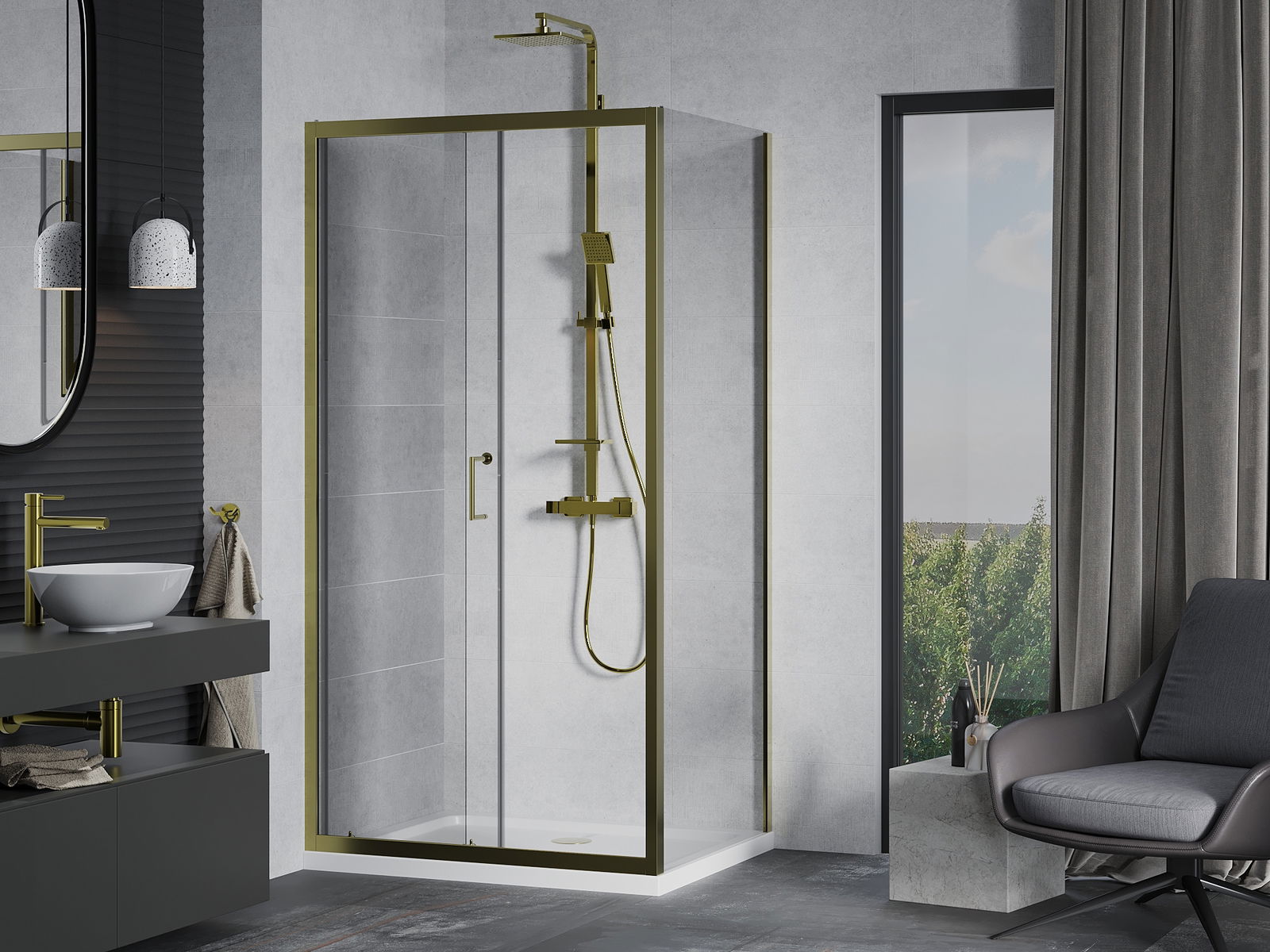 Mexen Apia sliding shower enclosure 110 x 90 cm, transparent, gold + Flat tray, white- 840-110-090-50-00-4010G