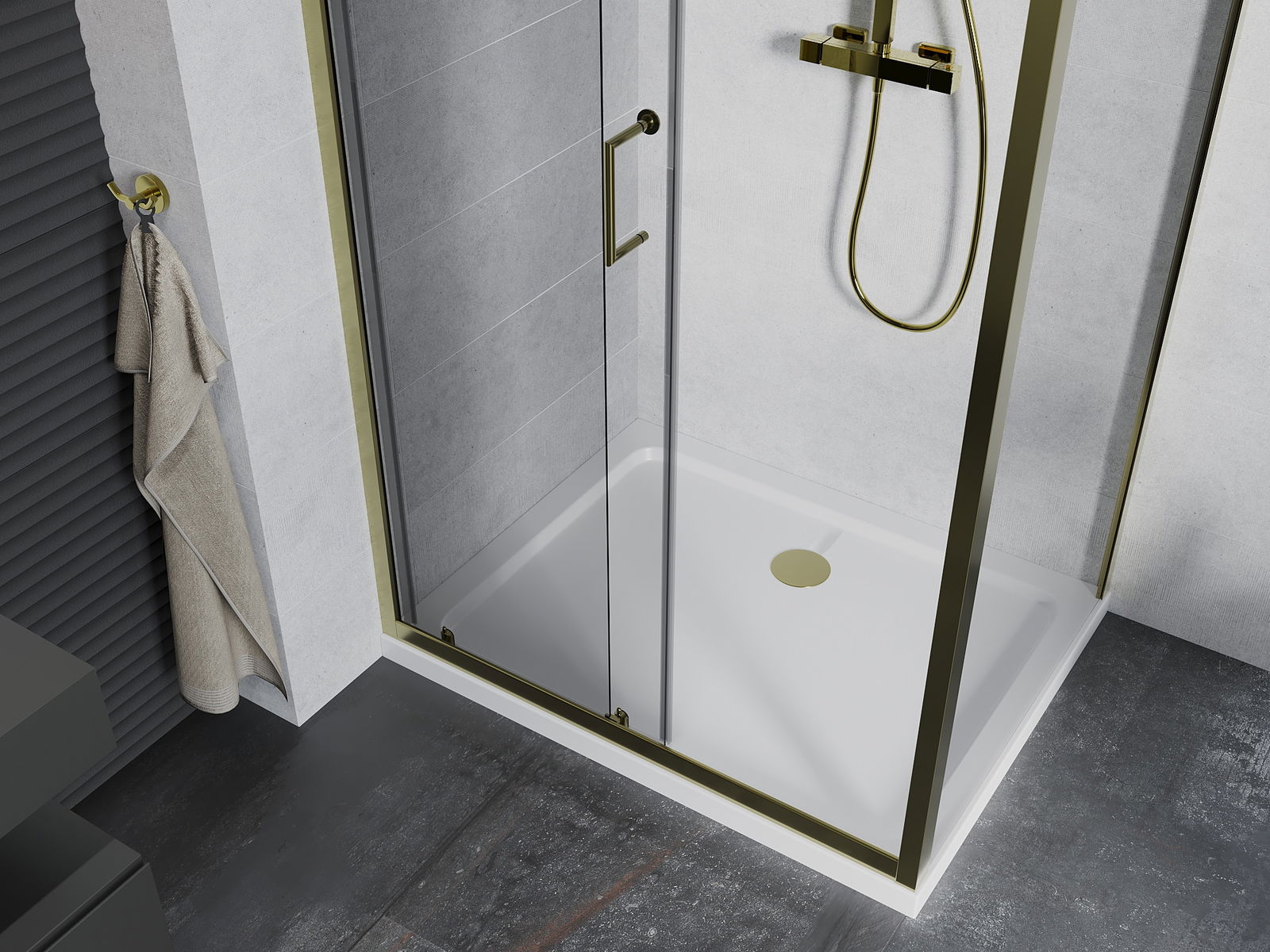 Mexen Apia sliding shower cabin 130 x 100 cm, transparent, gold + Flat shower tray, white - 840-130-100-50-00-4010G