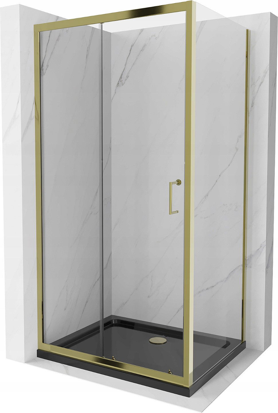Mexen Apia sliding shower cabin 110 x 90 cm, transparent, gold + Flat shower tray, black - 840-110-090-50-00-4070G