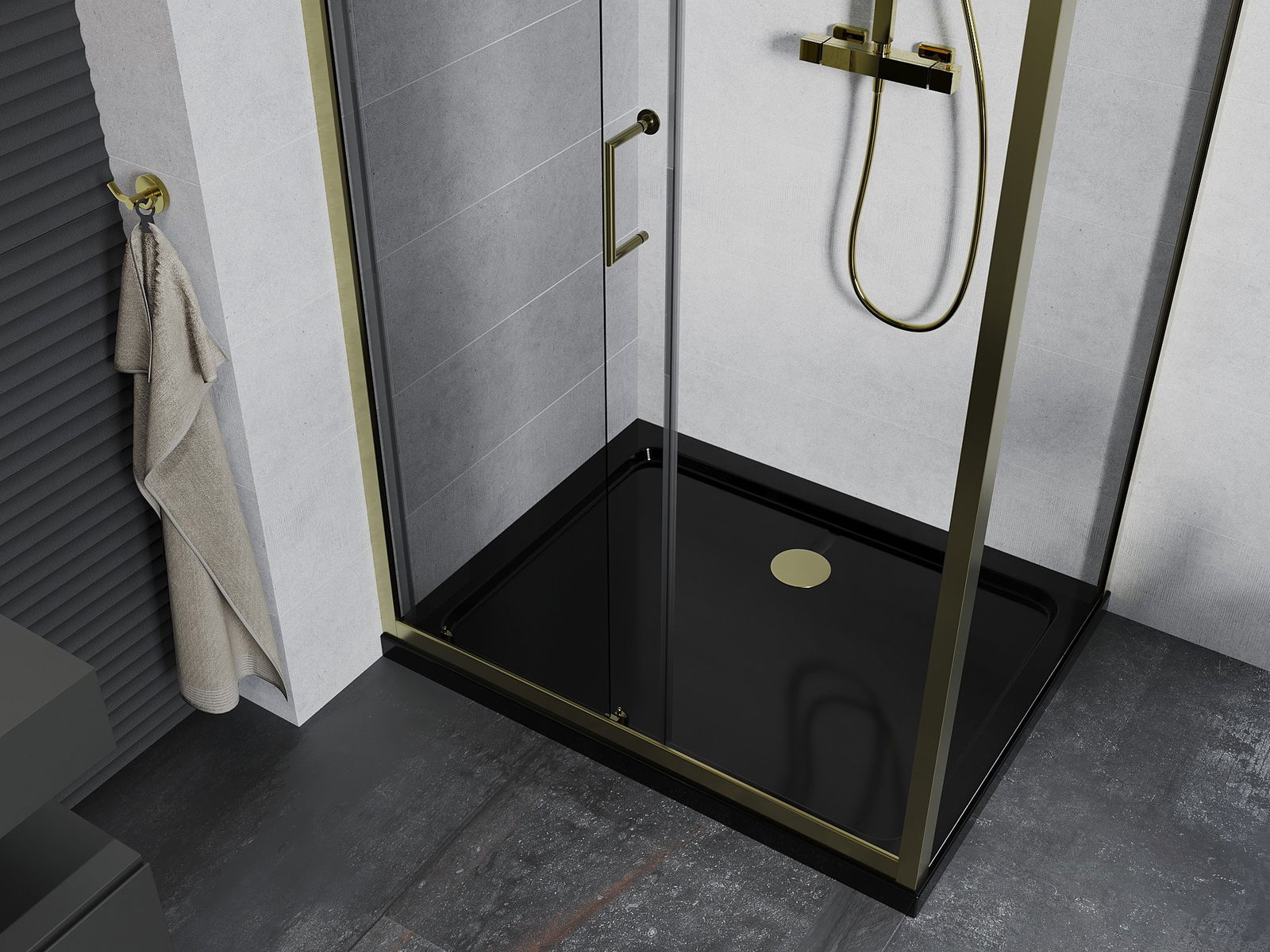 Mexen Apia Sliding Shower Enclosure 140 x 80 cm, Transparent, Gold + Flat Tray, Black - 840-140-080-50-00-4070G