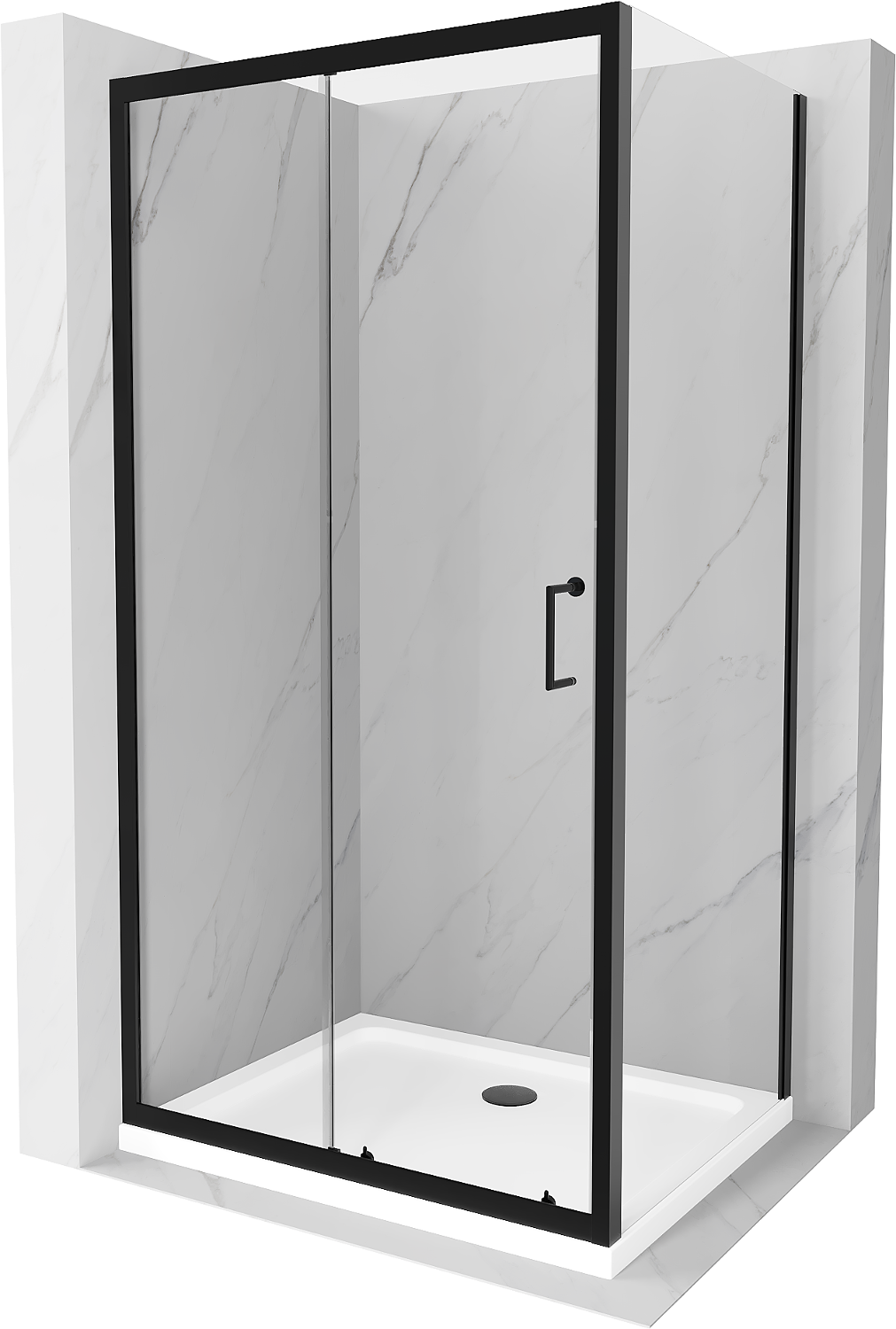Mexen Apia sliding shower cabin 90 x 80 cm, transparent, black + Flat tray, white- 840-090-080-70-00-4010B