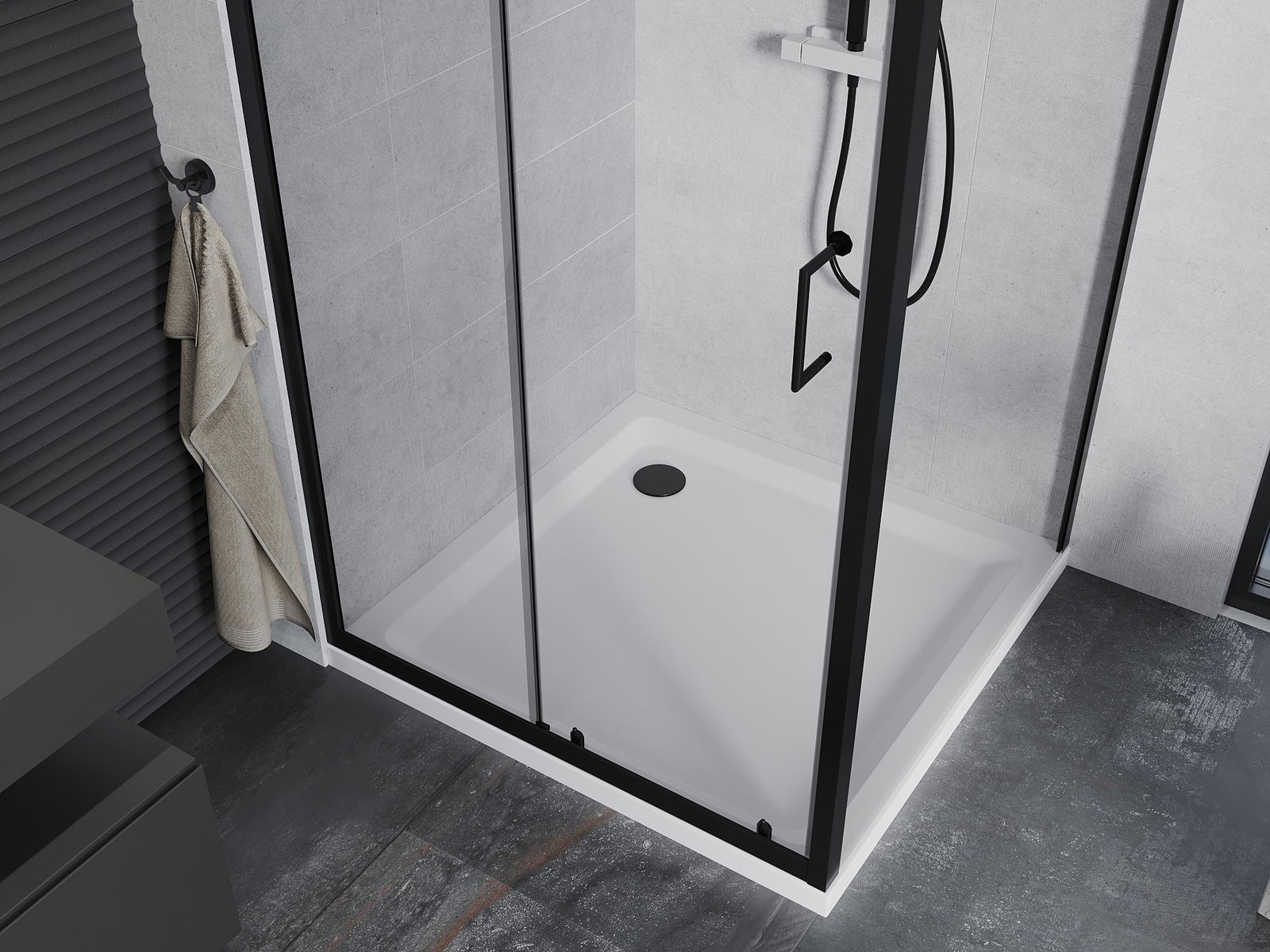 Mexen Apia sliding shower cabin 90 x 90 cm, transparent, black + Flat shower tray, white- 840-090-090-70-00-4010B