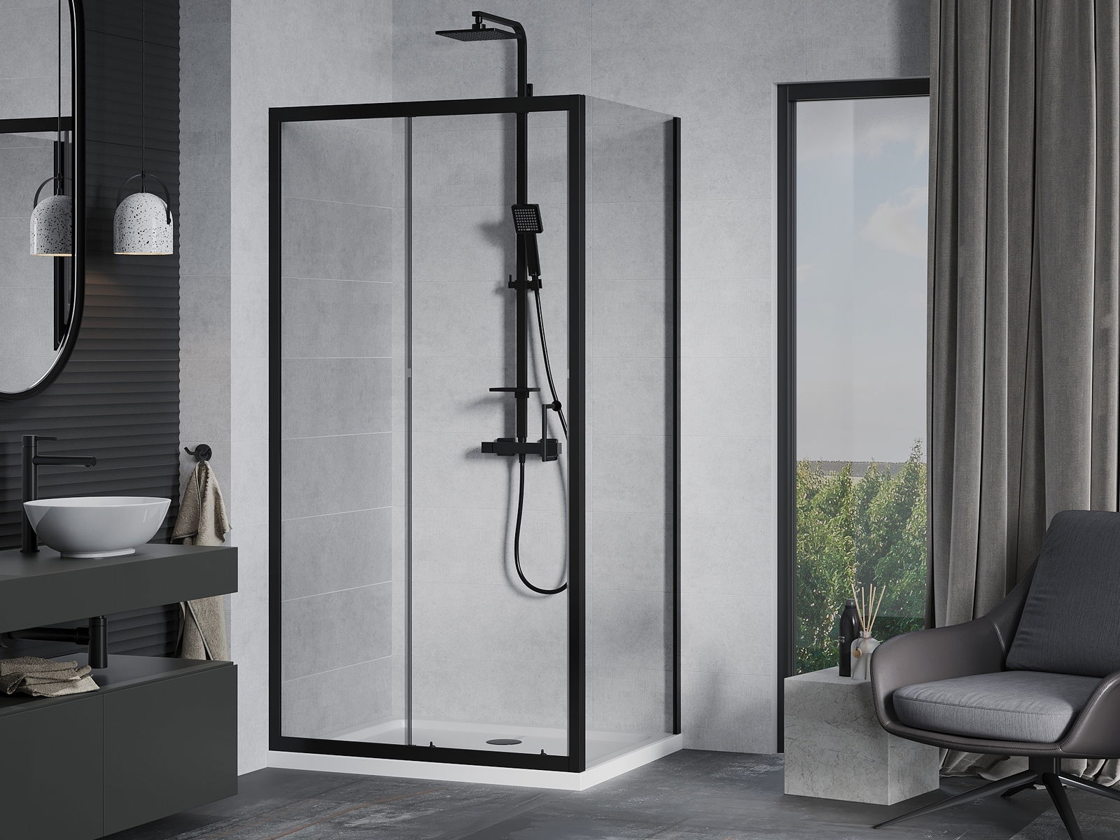 Mexen Apia sliding shower cabin 90 x 100 cm, transparent, black + Flat shower tray, white - 840-090-100-70-00-4010B