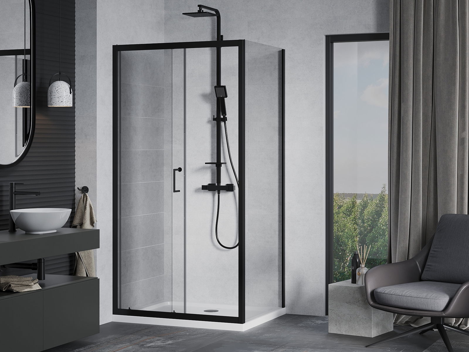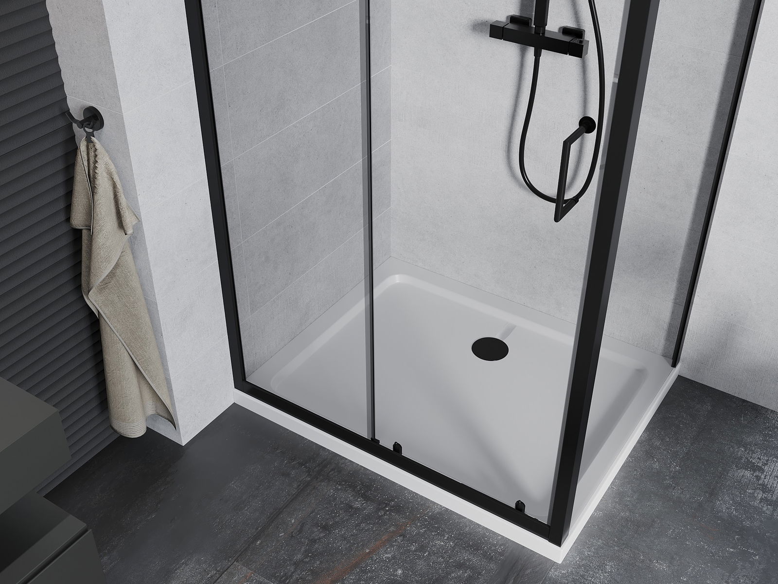 The handy and comfortable handle is made of durable and resistant metal. The fashionable shape, combined with a finish matching the color of the profiles, gives the whole a modern and stylish look, emphasizing the aesthetics of any bathroom.