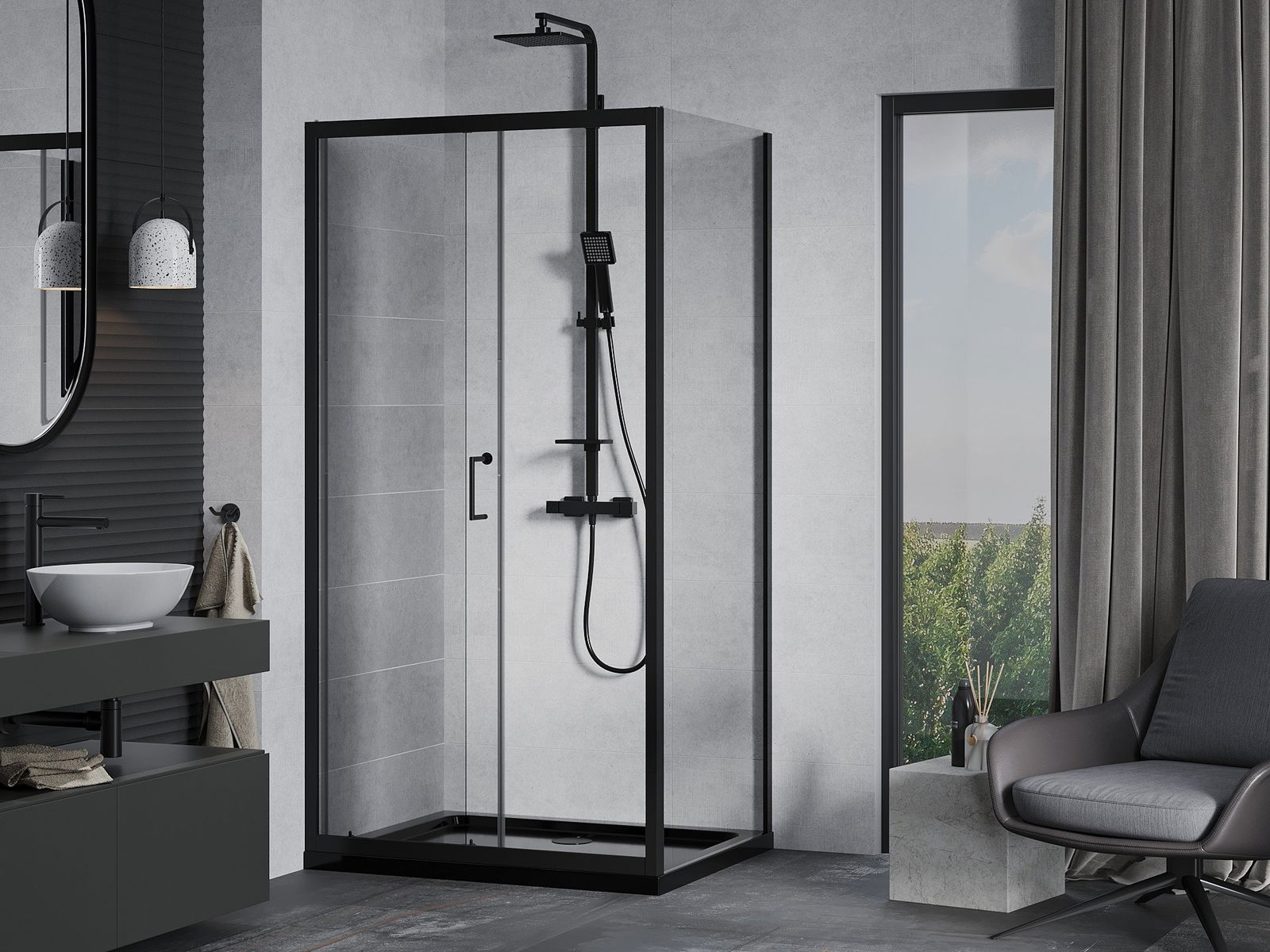 The handy and comfortable handle is made of durable and resistant metal. The fashionable shape, combined with a finish matching the color of the profiles, gives the whole a modern and stylish look, emphasizing the aesthetics of any bathroom.