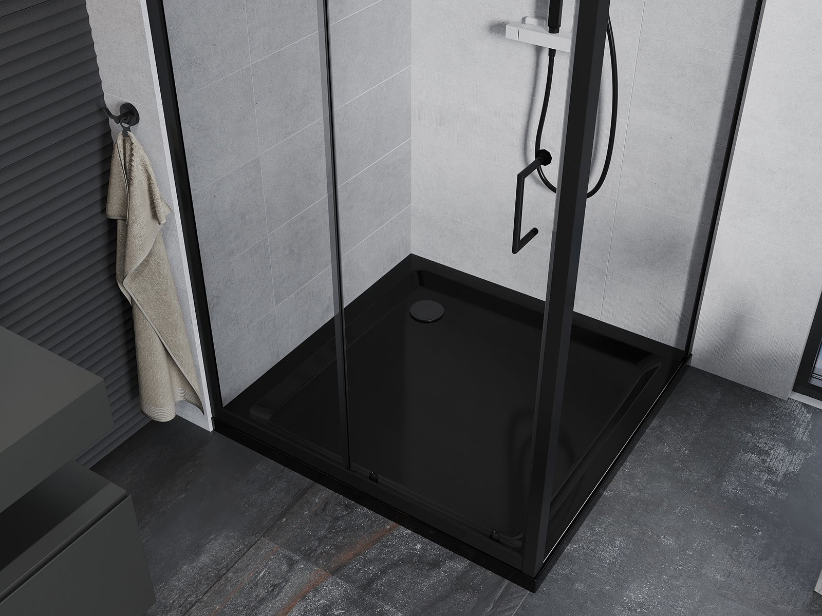 The handy and comfortable handle is made of durable and resistant metal. The fashionable shape, combined with a finish matching the color of the profiles, gives the whole a modern and stylish look, emphasizing the aesthetics of any bathroom.