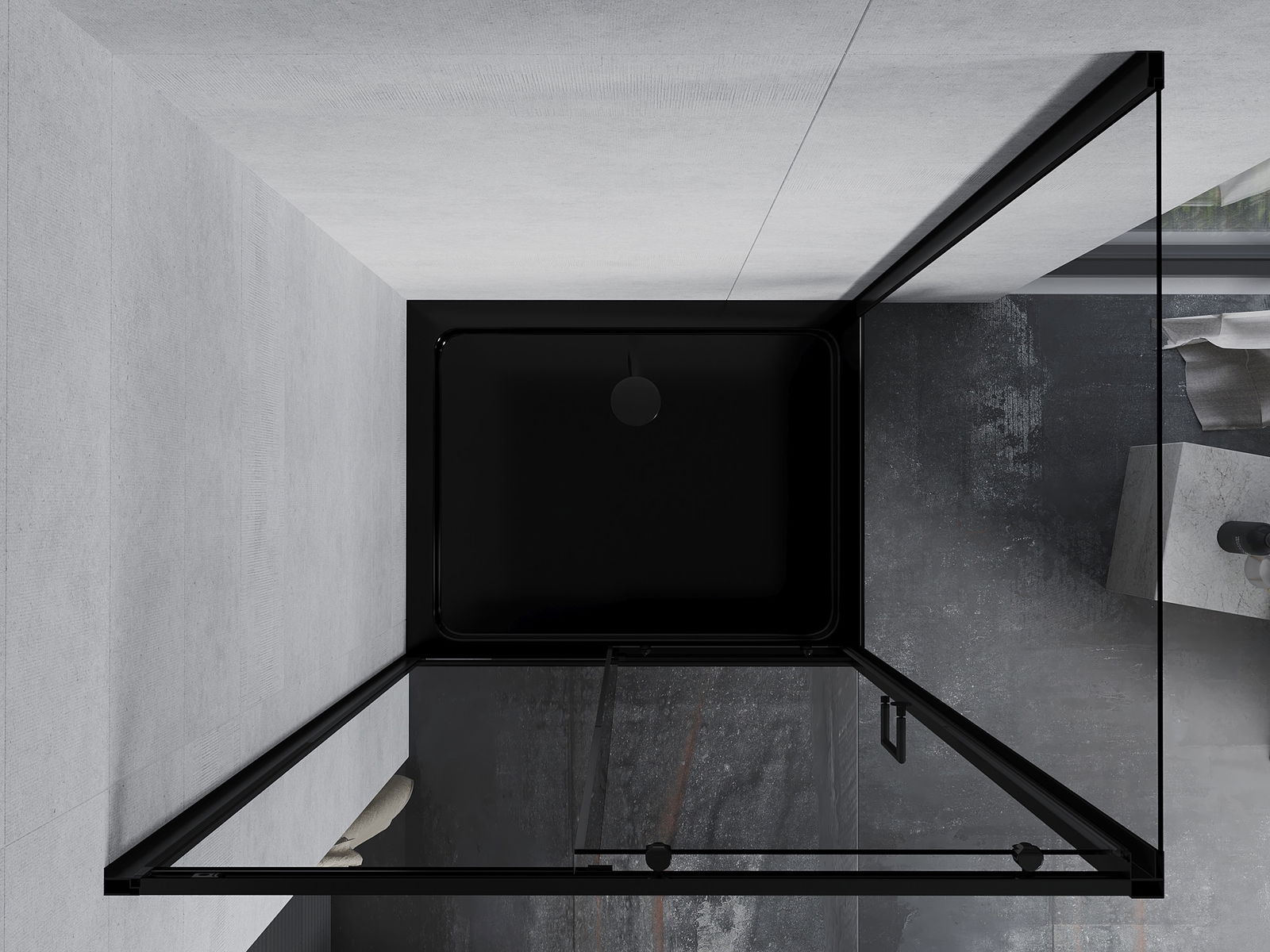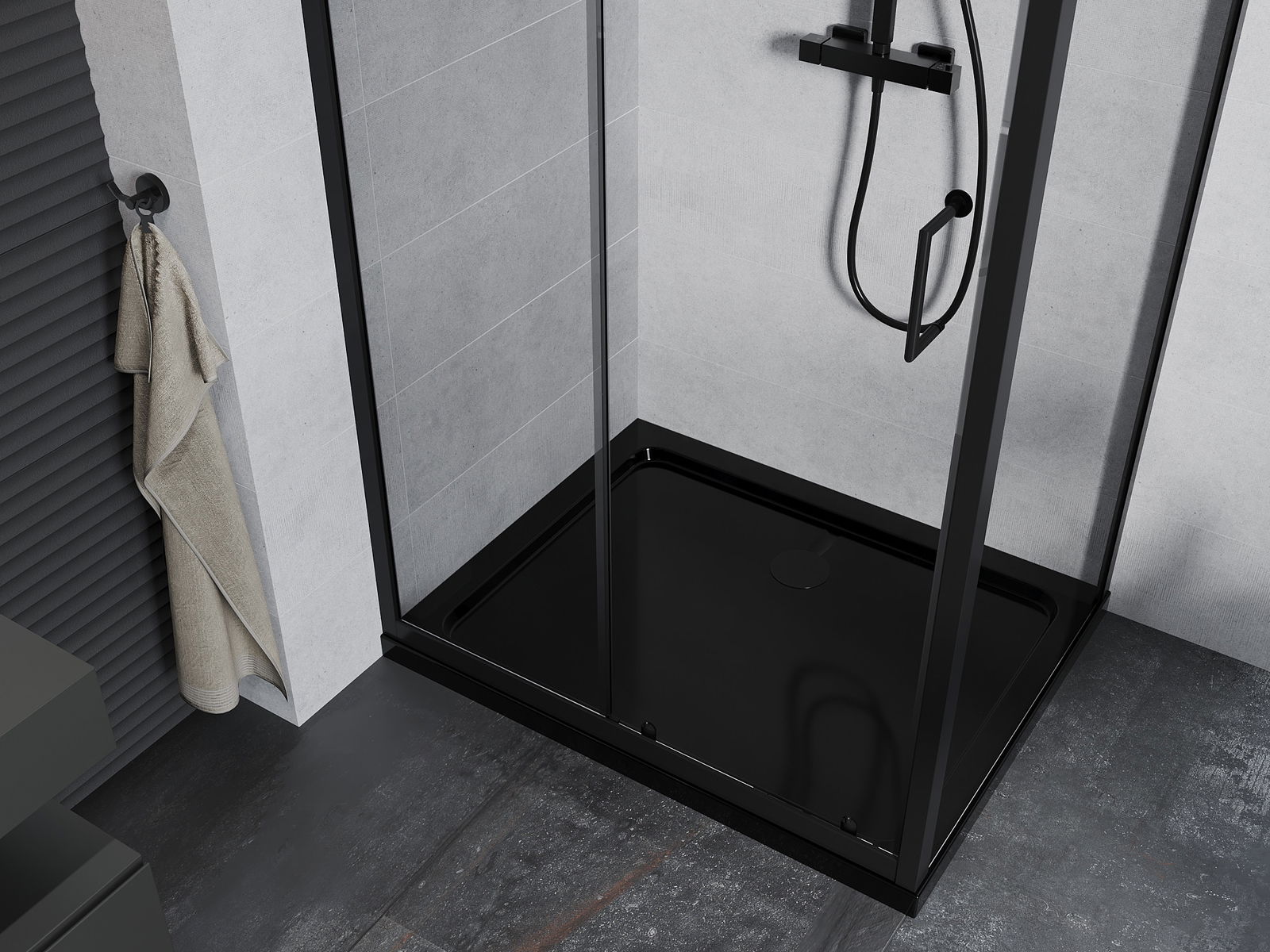 Mexen Apia 140 x 100 cm Sliding Shower Enclosure, Transparent, Black + Flat Shower Tray, Black - 840-140-100-70-00-4070B