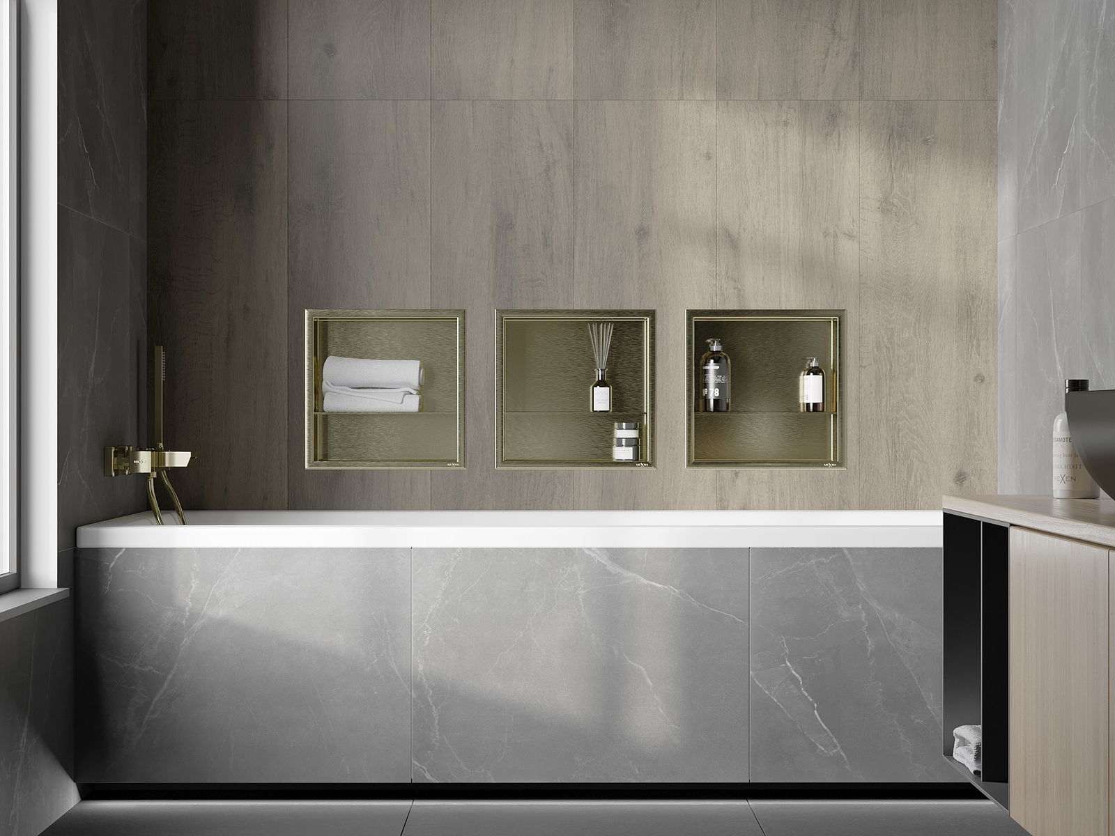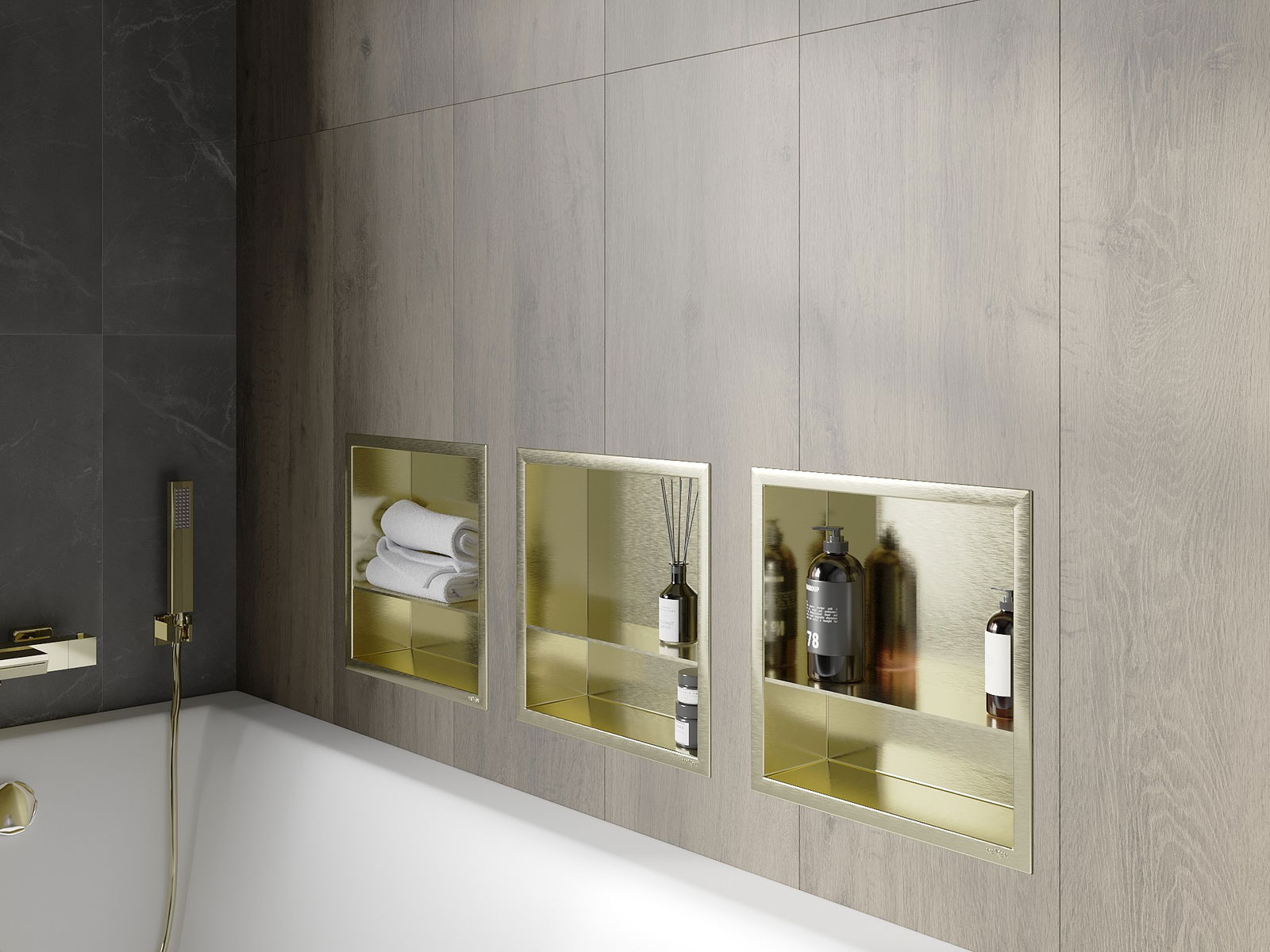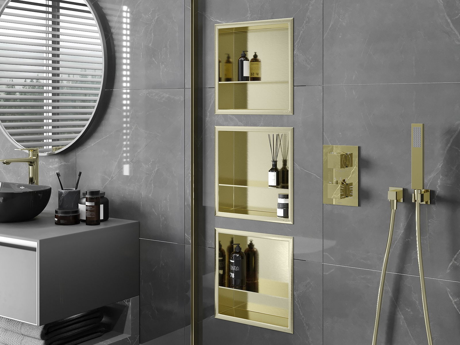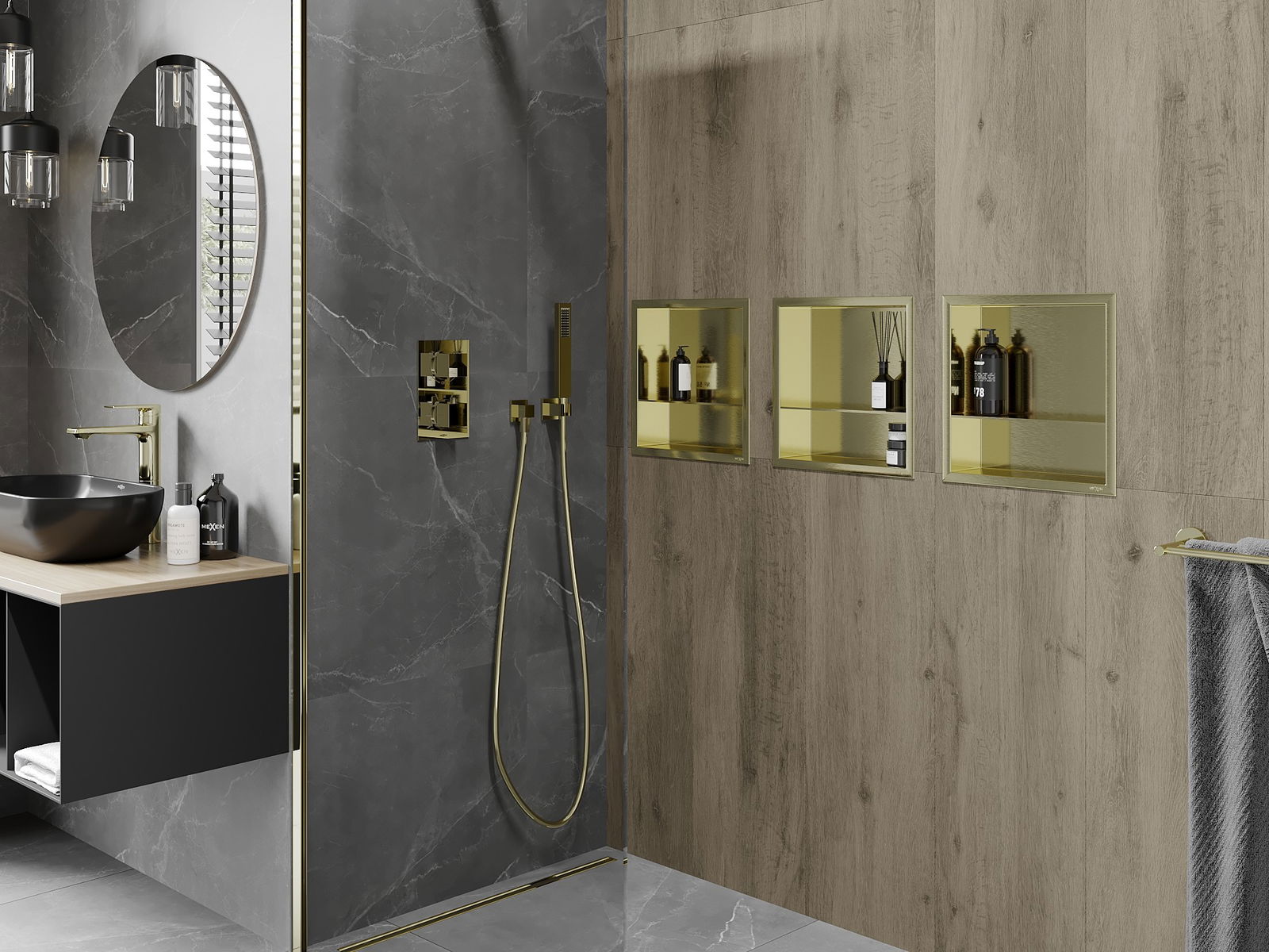 Mexen X-Wall-R recessed shelf with collar and shelf 30 x 30 cm, brushed gold - 1950303010S