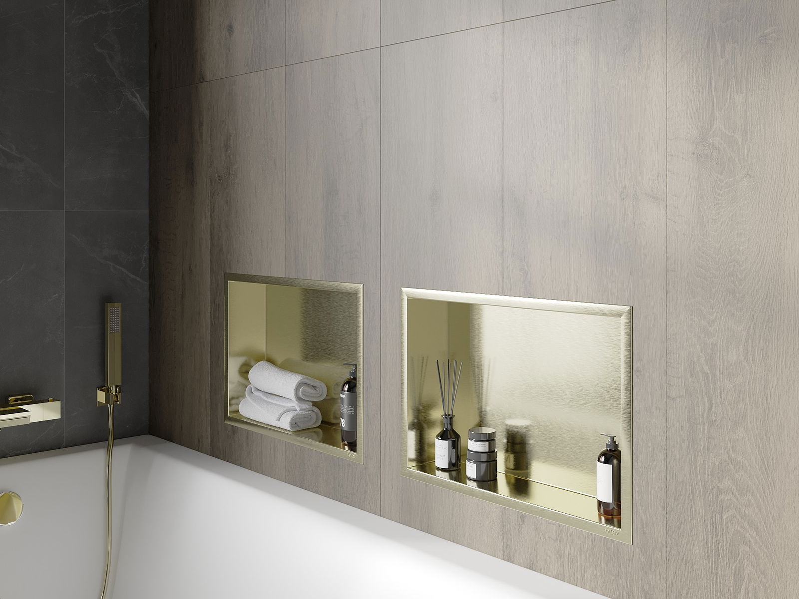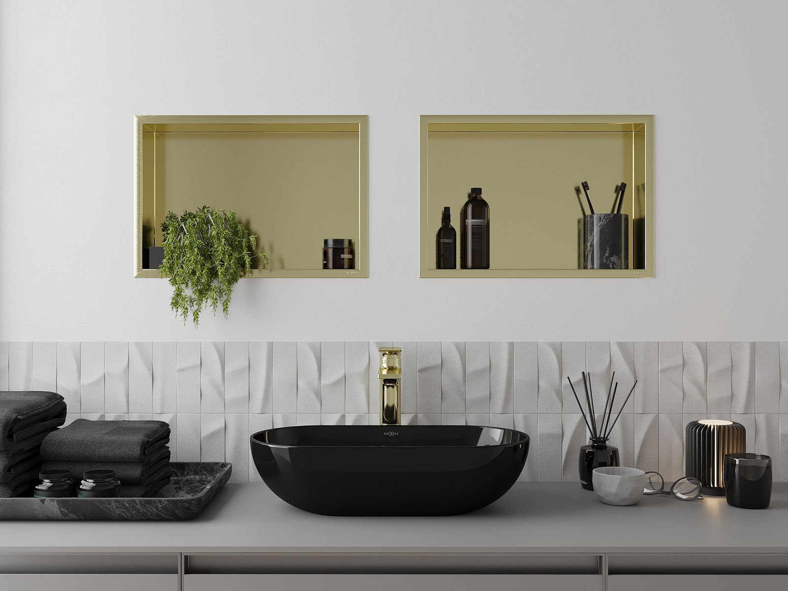 Mexen X-Wall-R recessed shelf with flange 45 x 30 cm, brushed gold - 1950453010