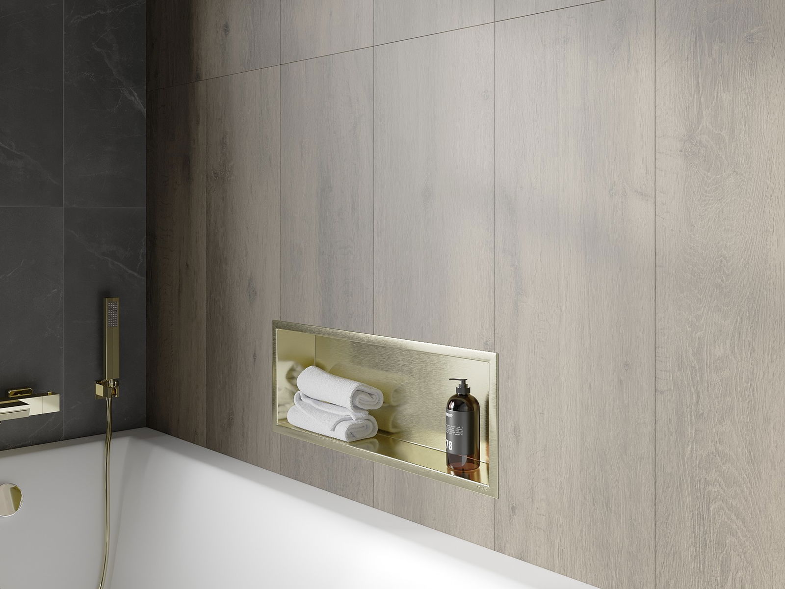 Mexen X-Wall-R niche shelf with flange 60 x 20 cm, brushed gold - 1950602010