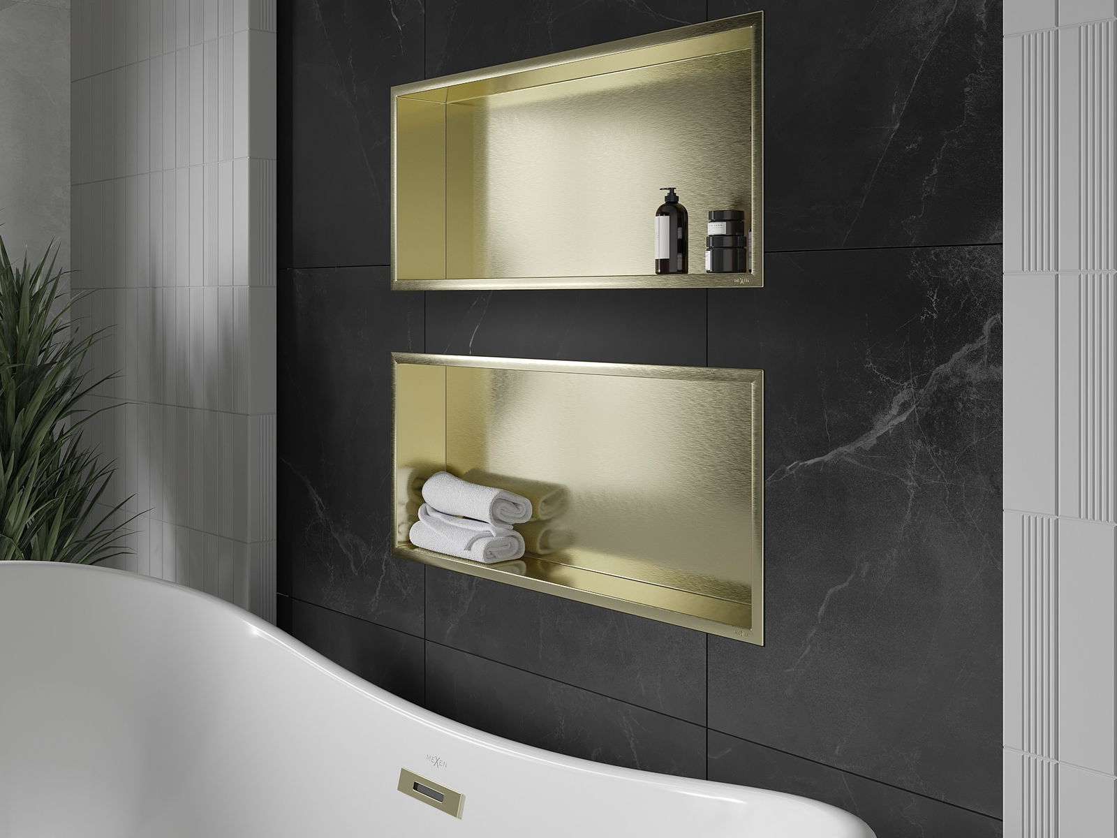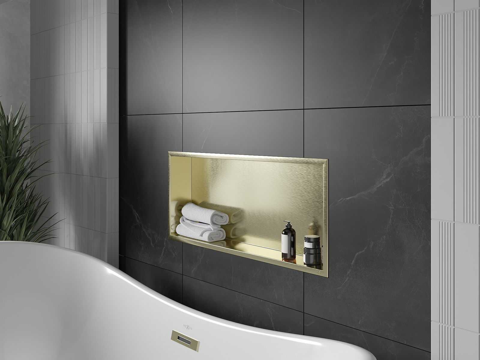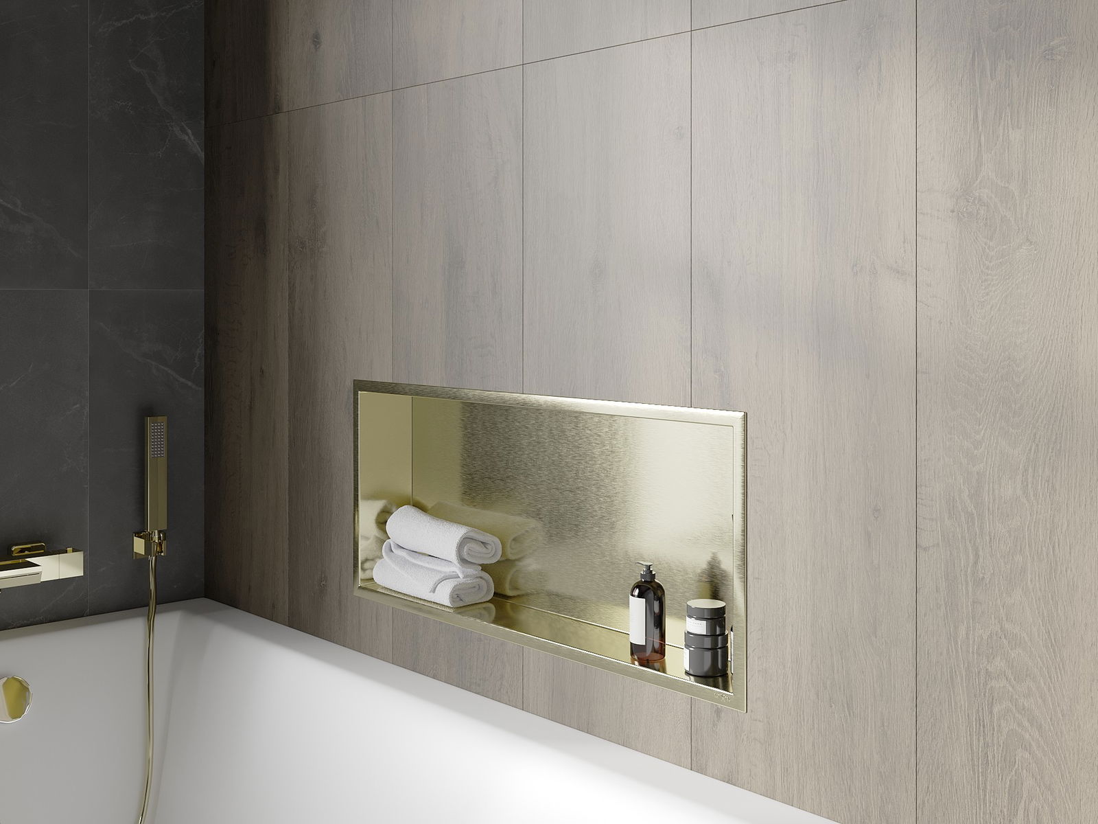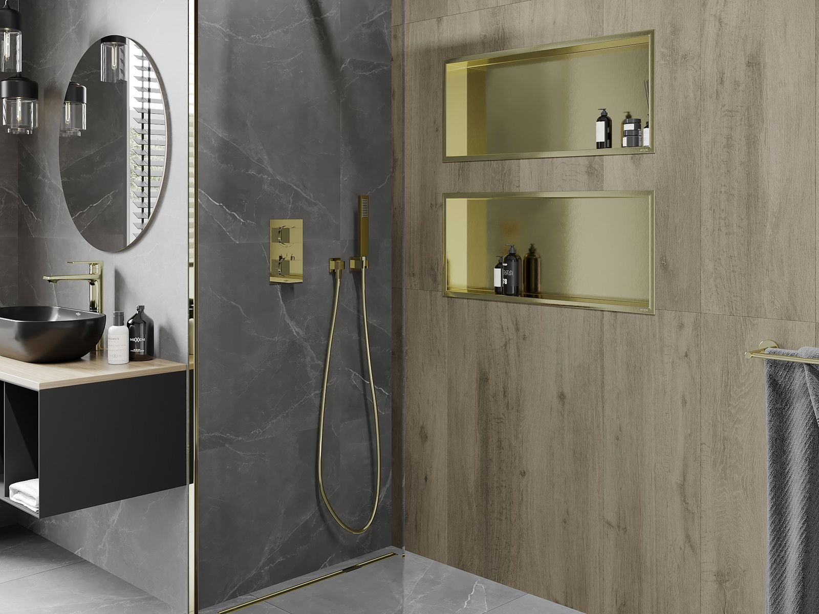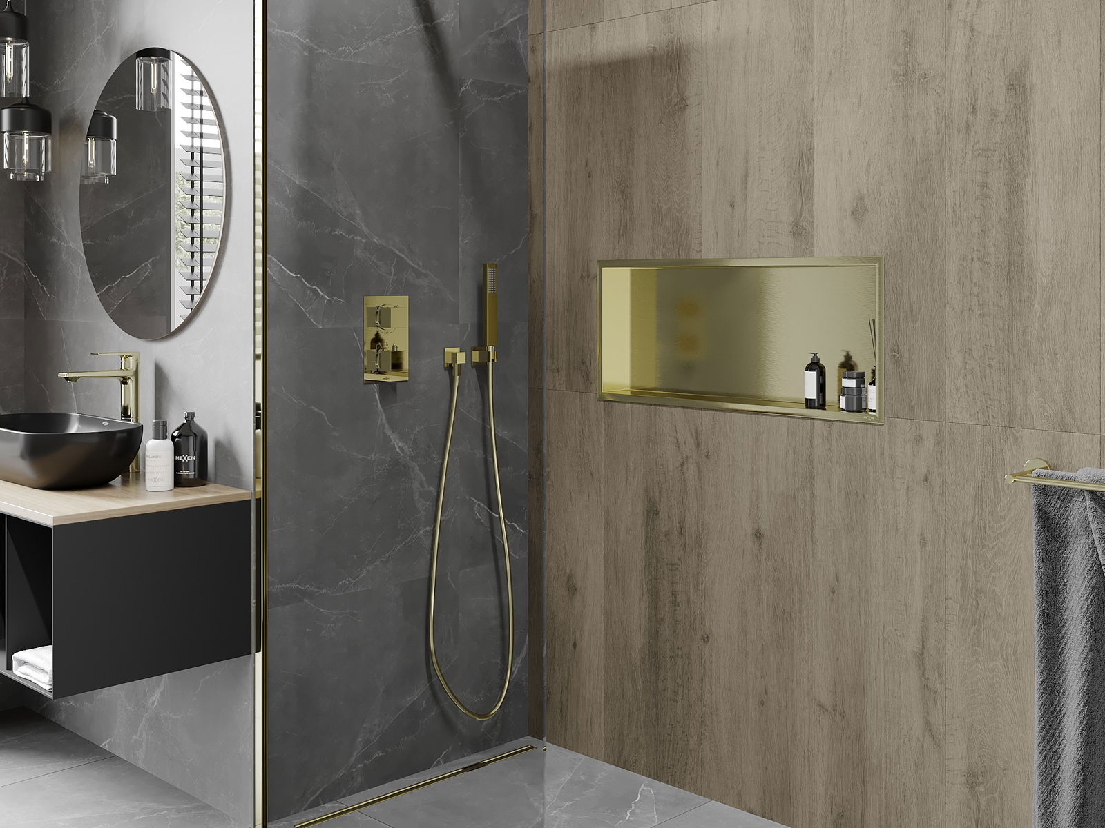 Mexen X-Wall-R recessed shelf with flange 75 x 30 cm, brushed gold - 1950753010