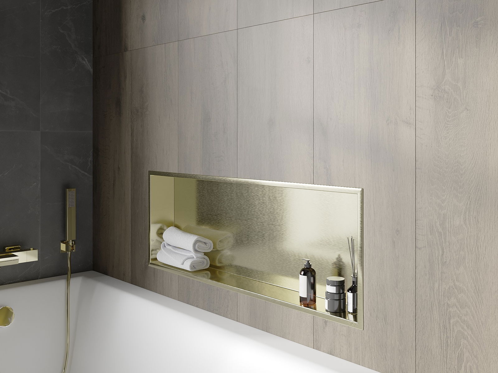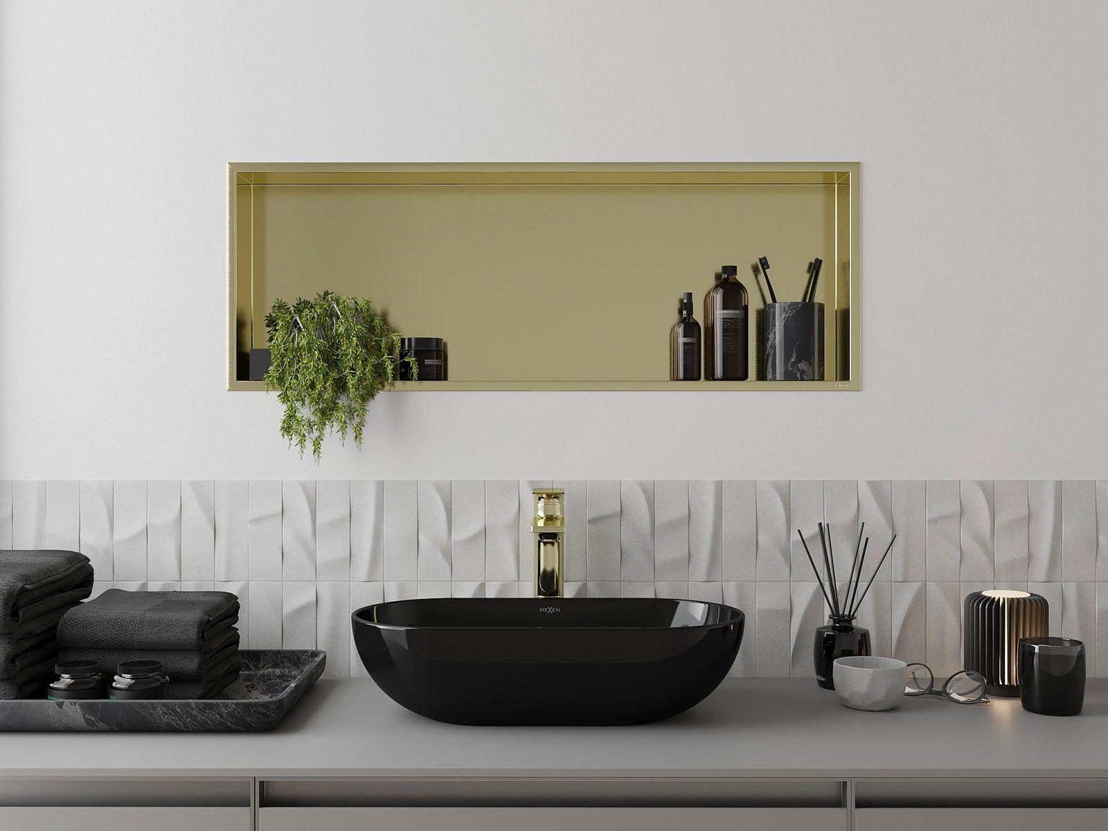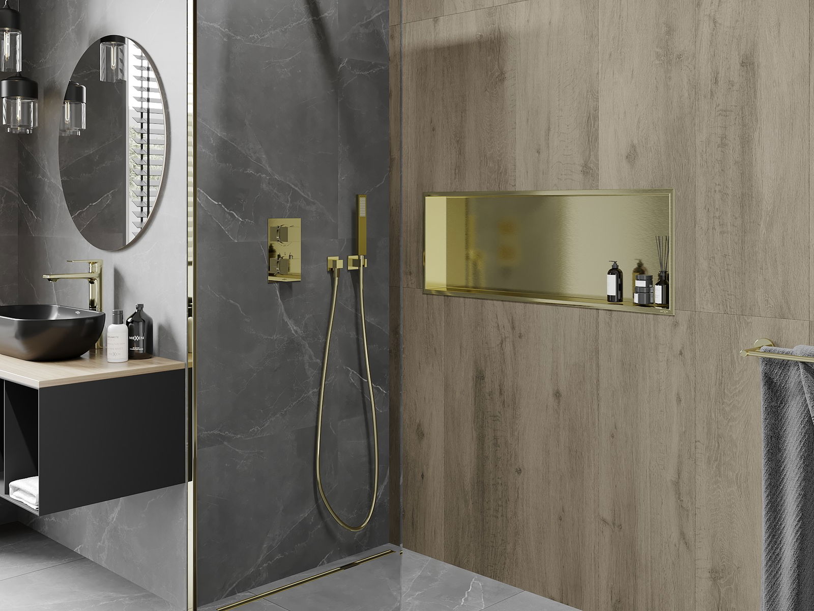 Mexen X-Wall-R recessed shelf with flange 90 x 30 cm, brushed gold - 1950903010