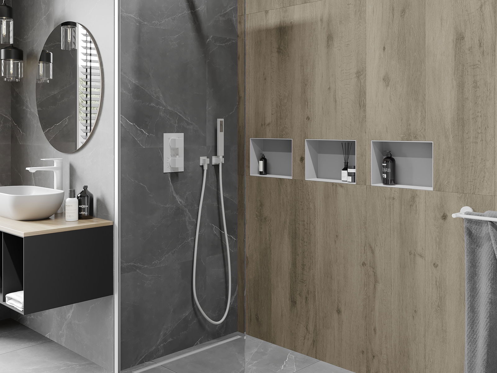 Possibility of installation in the wall or in a specially prepared building. It is an extremely modern and functional solution that allows you to save space and match the product to the aesthetics of the interior and create a coherent composition.