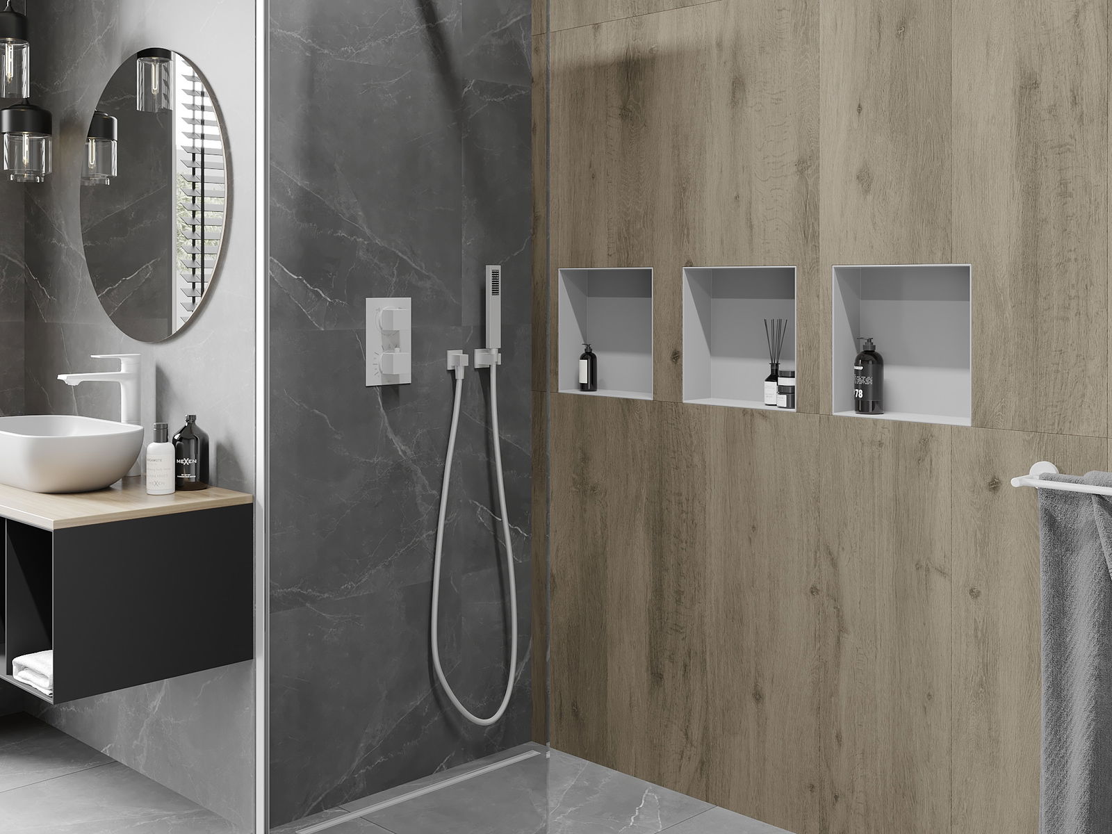 Possibility of installation in the wall or in a specially prepared building. It is an extremely modern and functional solution that allows you to save space and match the product to the aesthetics of the interior and create a coherent composition.