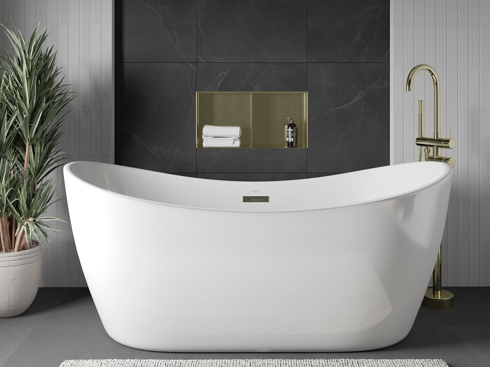 Mexen X-Wall-NR recess shelf without flange with shelf 60 x 30 cm, brushed gold - 1951603010S
