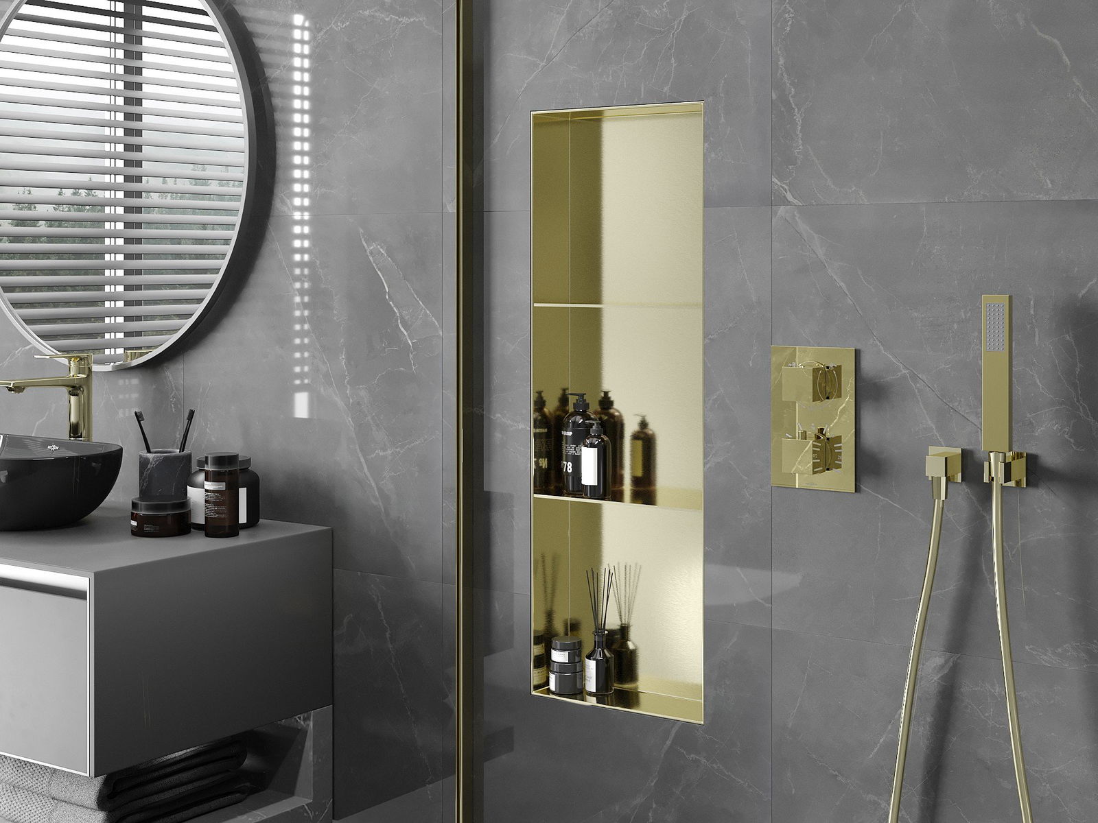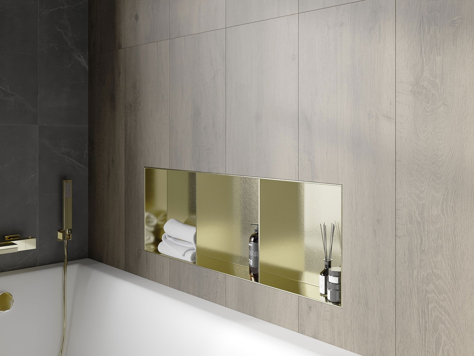 Mexen X-Wall-NR recessed shelf without flange with shelf 90 x 30 cm, brushed gold - 1951903010S