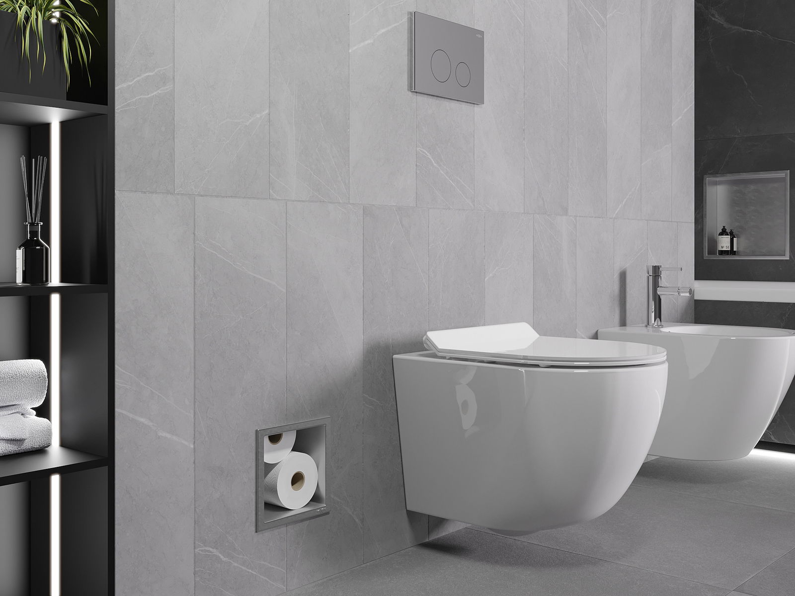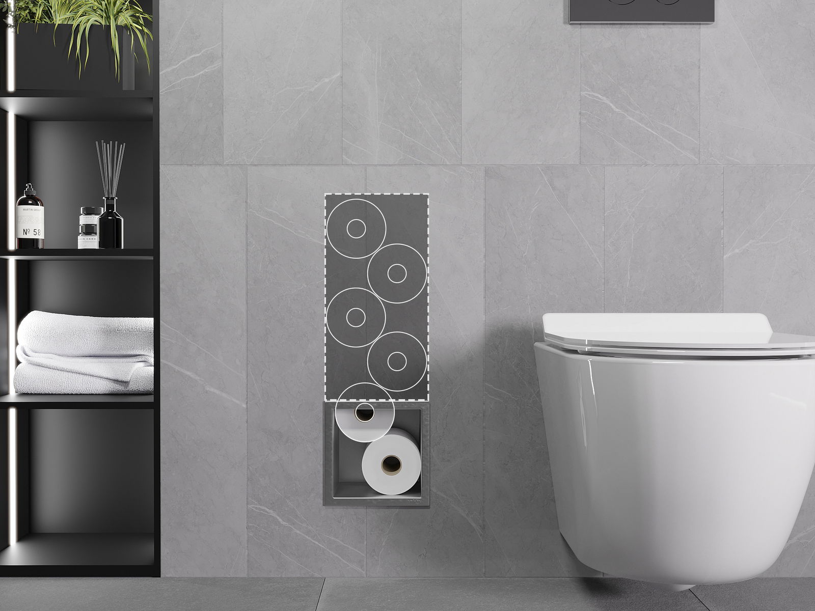 X-wall is a practical toilet paper holder with a built-in wall-mounted dispenser. A new roll is always within reach, and the space previously used for storing toilet paper can be used for other purposes.