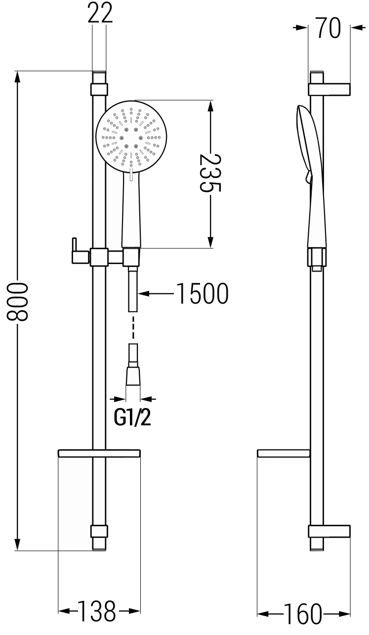 Distance from wall: 160 mm