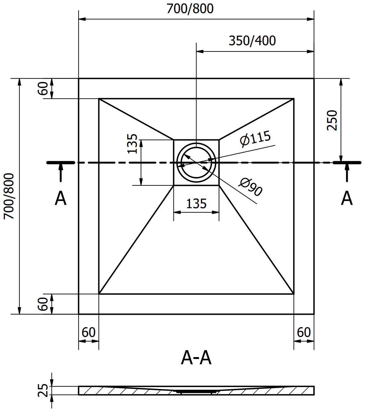 The shower trays have a non -slip surface that effectively reduces the risk of slipping during bathing, protecting against falls and injuries. It provides comfort, safety and stability even on a wet surface.