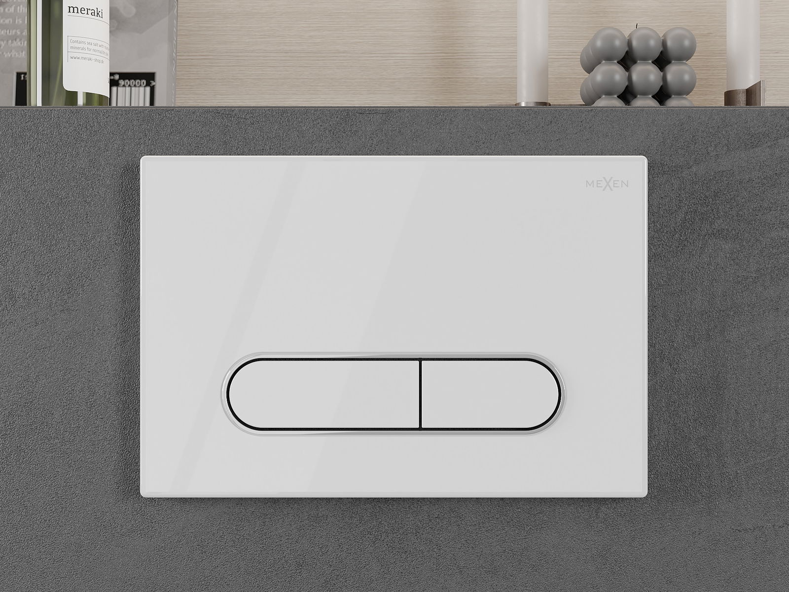 The button fits the frame from the Mexen Fenix Slim series, in which it is possible to install from the front. A popular and practical solution especially in bathrooms, where access to the button from the front is more comfortable.