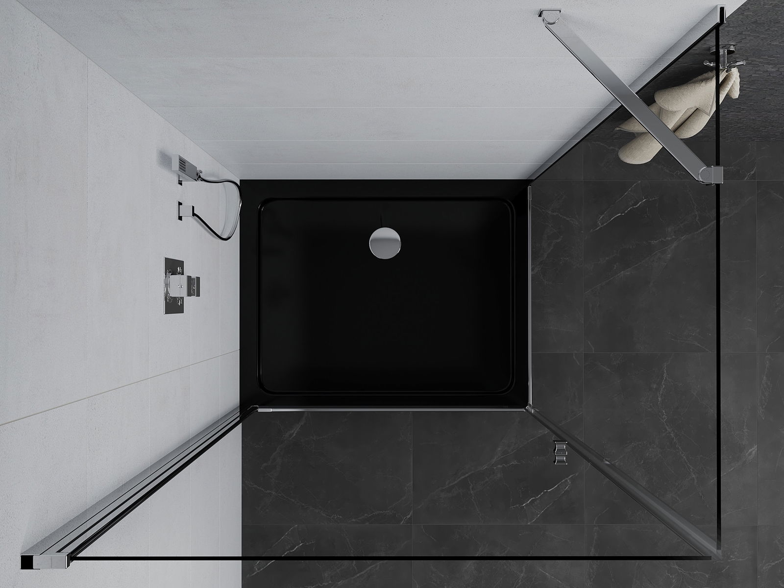 Mexen Pretoria hinged shower enclosure 70 x 120 cm, transparent, chrome + Flat tray, black - 852-070-120-01-00-4070