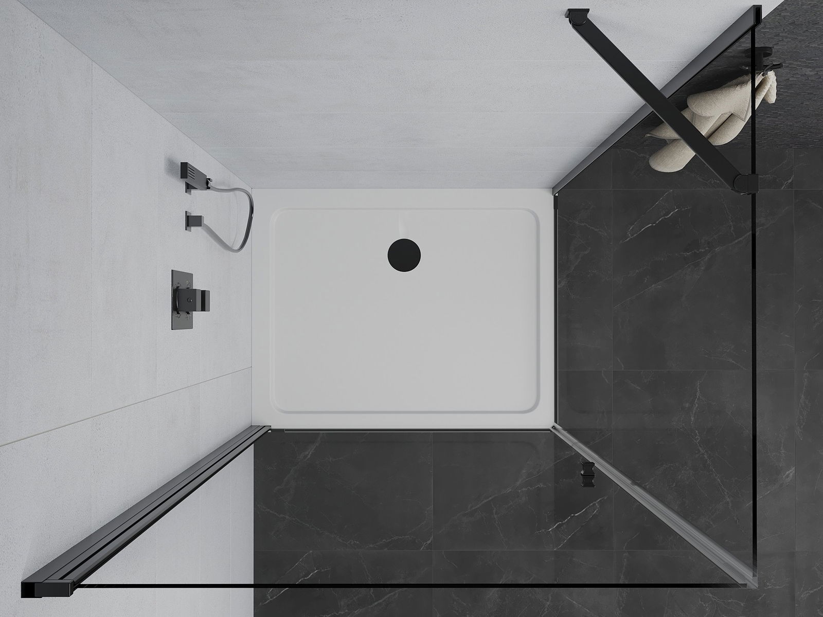 Mexen Pretoria Shower Enclosure Hinged 90 x 100 cm, Transparent, Black + Flat Tray - 852-090-100-70-00-4010B