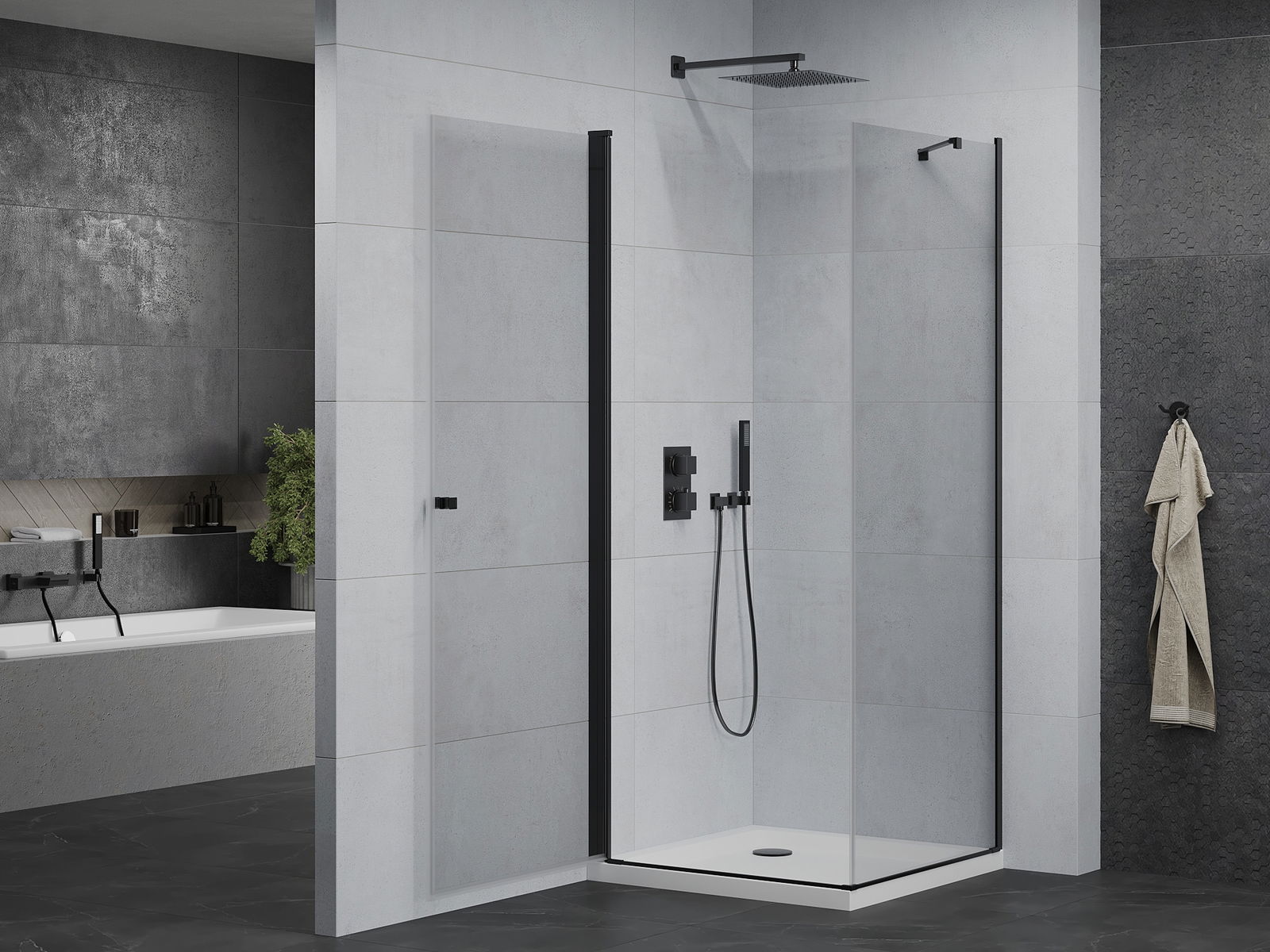 Mexen Pretoria 90 x 90 cm Swing Shower Enclosure, Transparent, Black + Flat Tray - 852-090-090-70-00-4010B