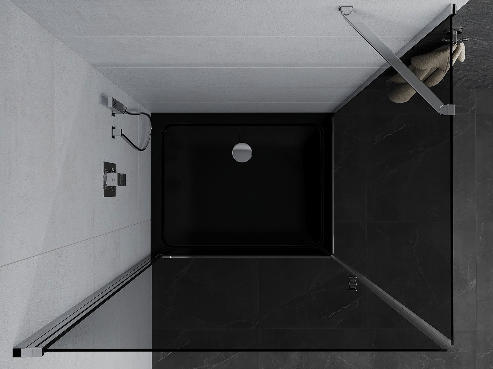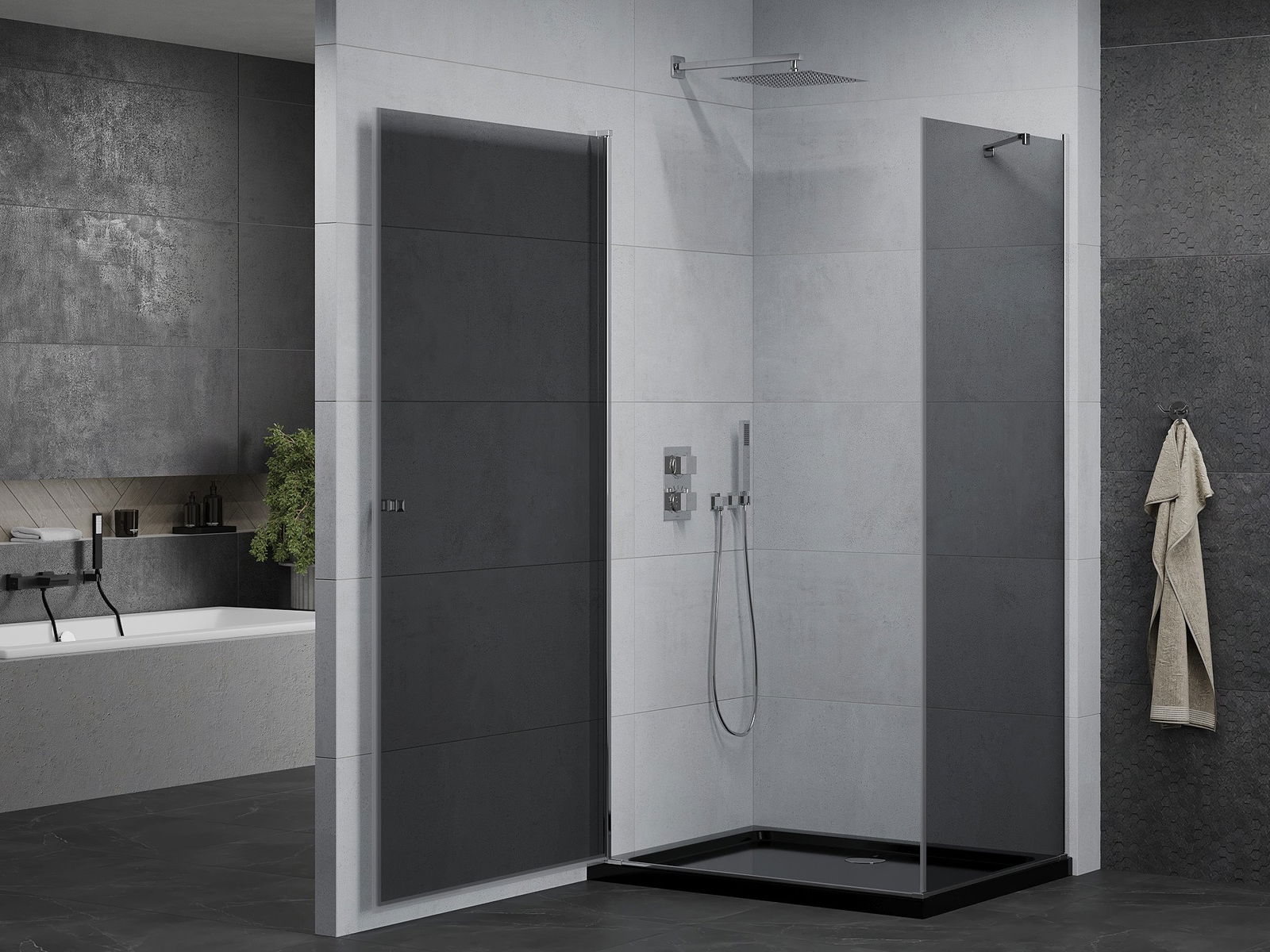 Mexen Pretoria Hinged Shower Enclosure 90 x 100 cm, Graphite, Chrome + Flat Shower Tray, Black - 852-090-100-01-40-4070