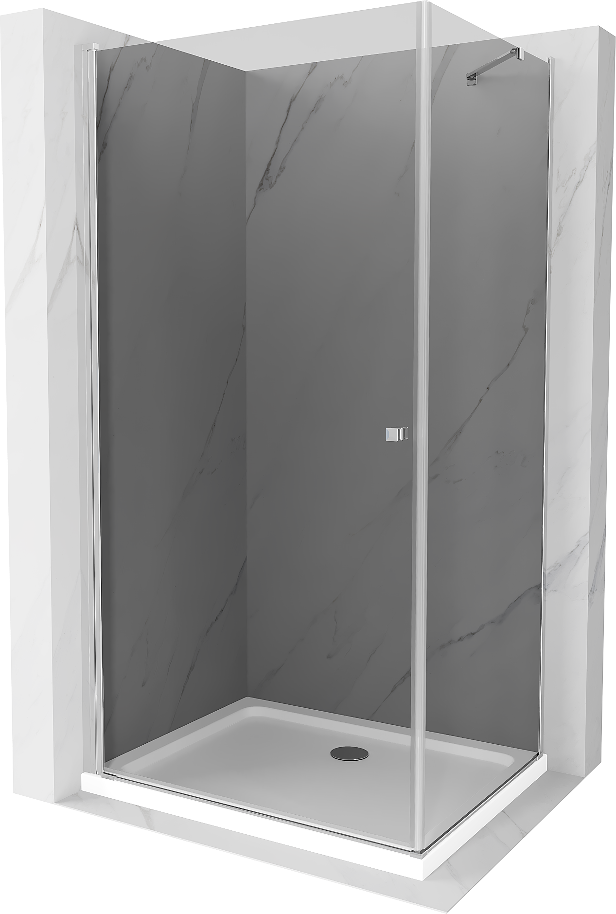 Mexen Pretoria 100 x 120 cm Hinged Shower Enclosure, Graphite, Chrome + Flat Shower Tray - 852-100-120-01-40-4010