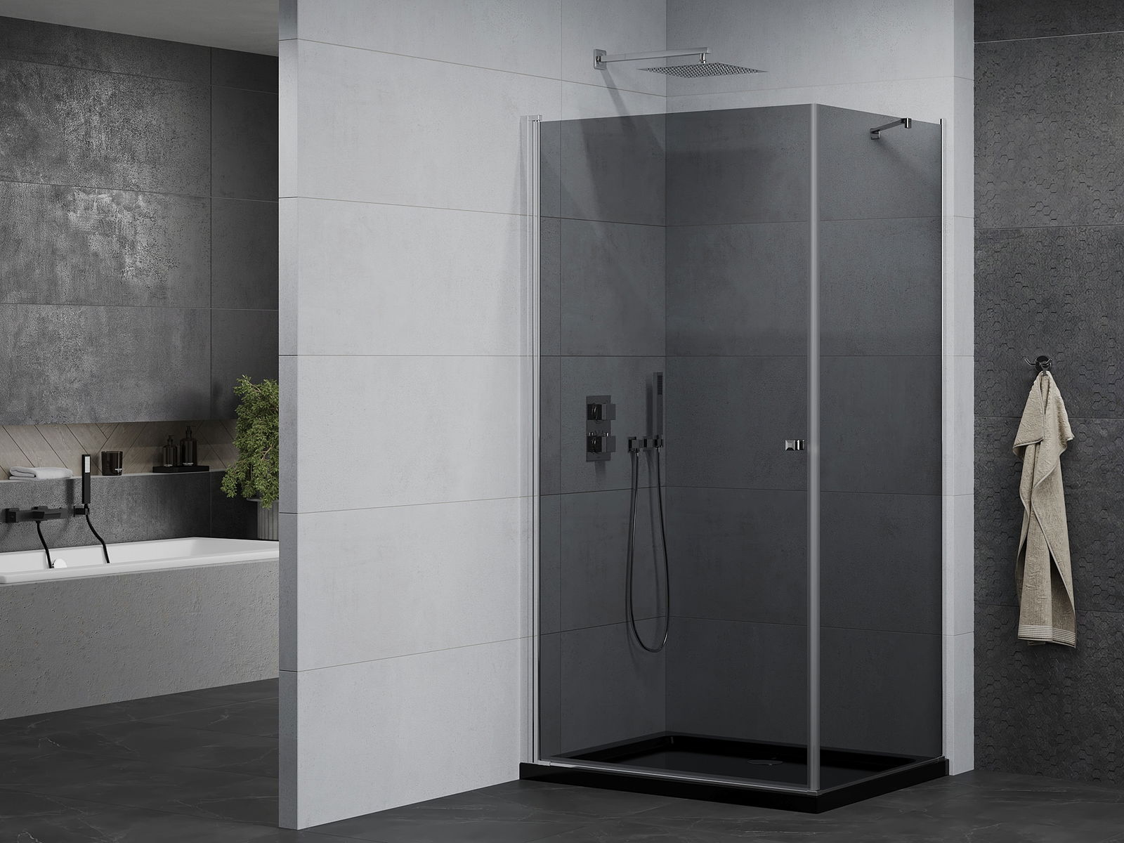 Mexen Pretoria 100 x 110 cm Hinged Shower Enclosure, Graphite, Chrome + Flat Tray, Black - 852-100-110-01-40-4070