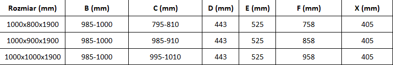Shower cabin technical data: