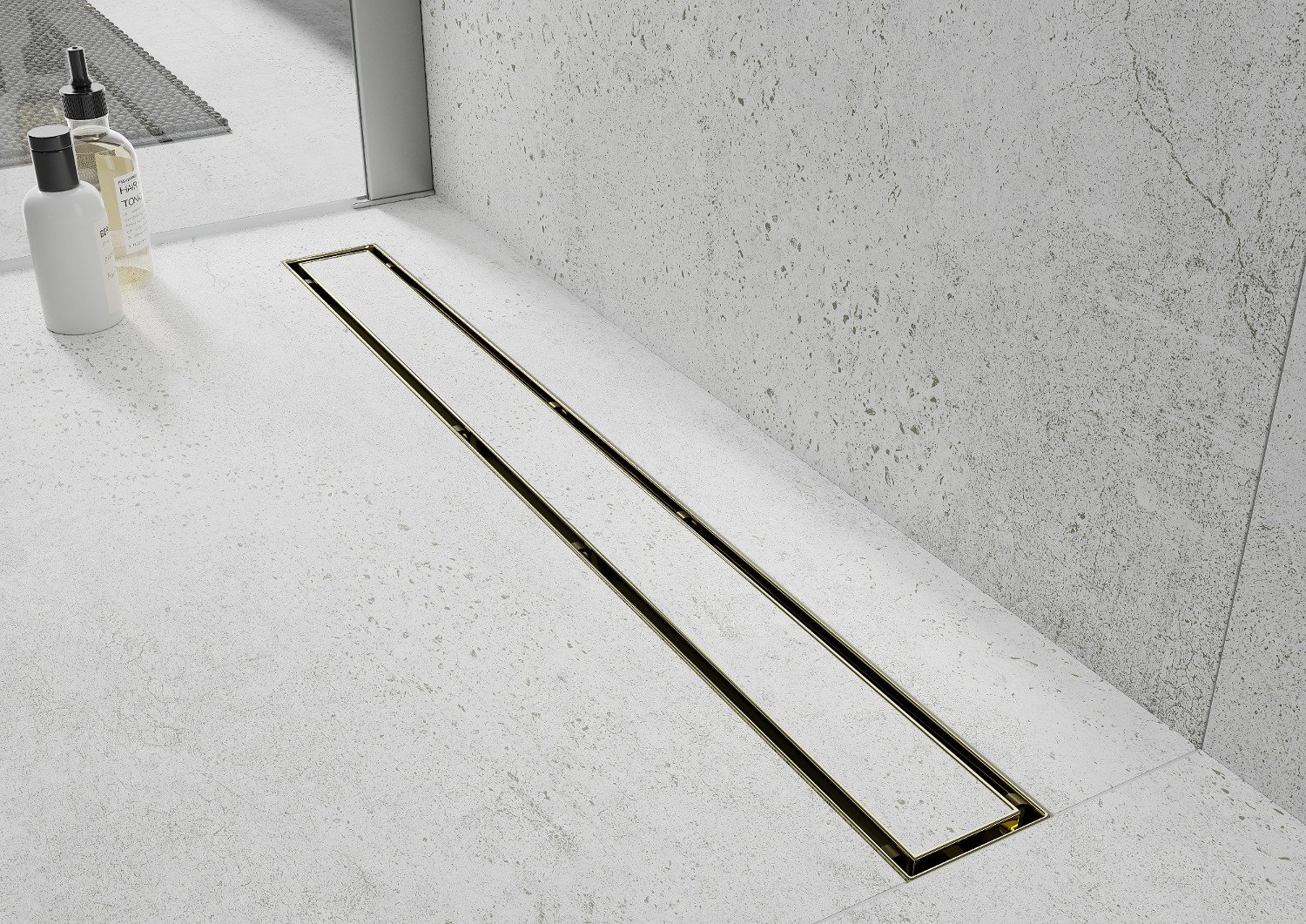 The linear drain is mounted at a depth of only 52 mm. The low depth allows for easier surface preparation for the drain installation and easy leveling, ensuring high aesthetics and effective water drainage.