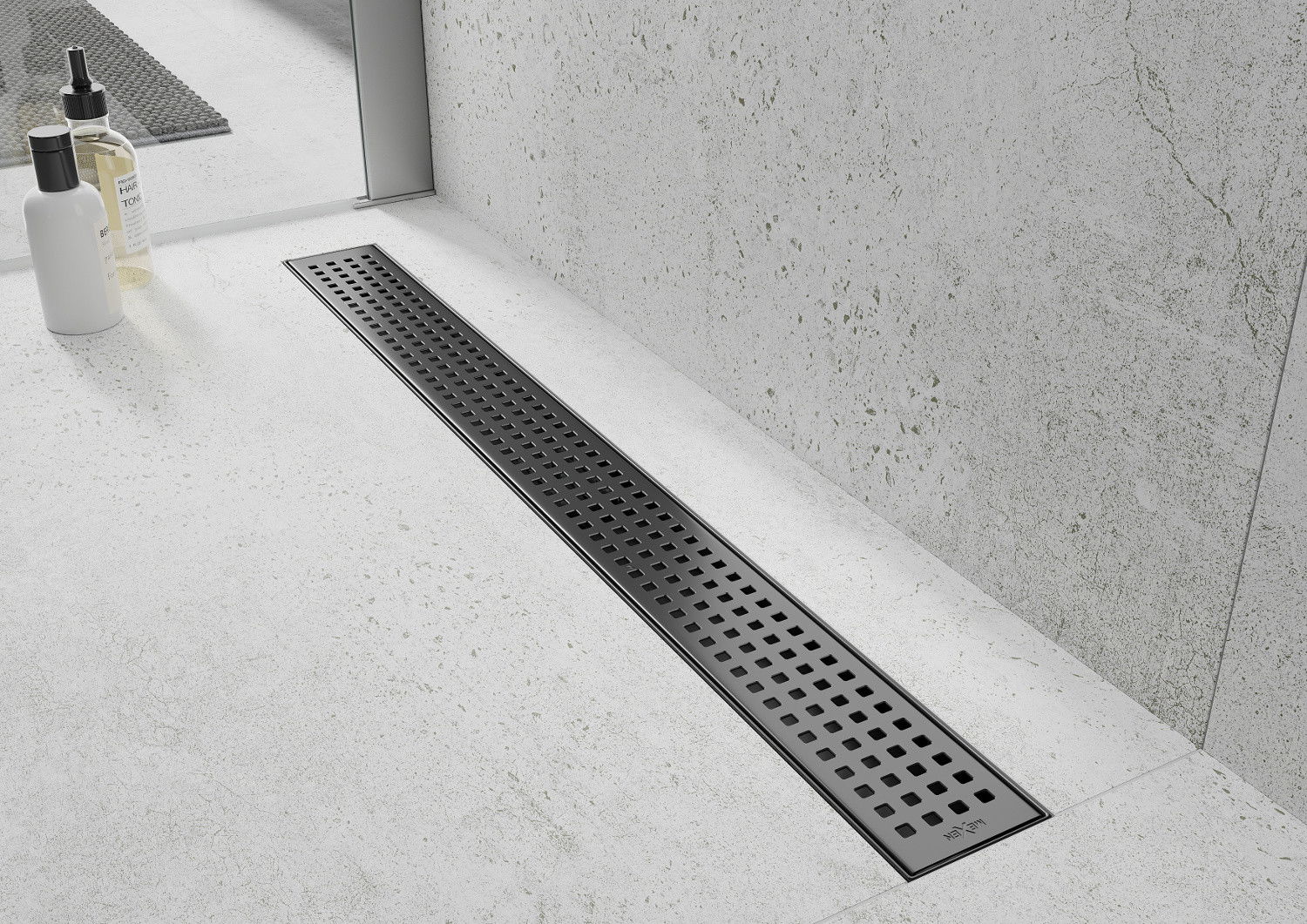The linear drain is mounted at a depth of only 52 mm. The low depth allows for easier surface preparation for the drain installation and easy leveling, ensuring high aesthetics and effective water drainage.