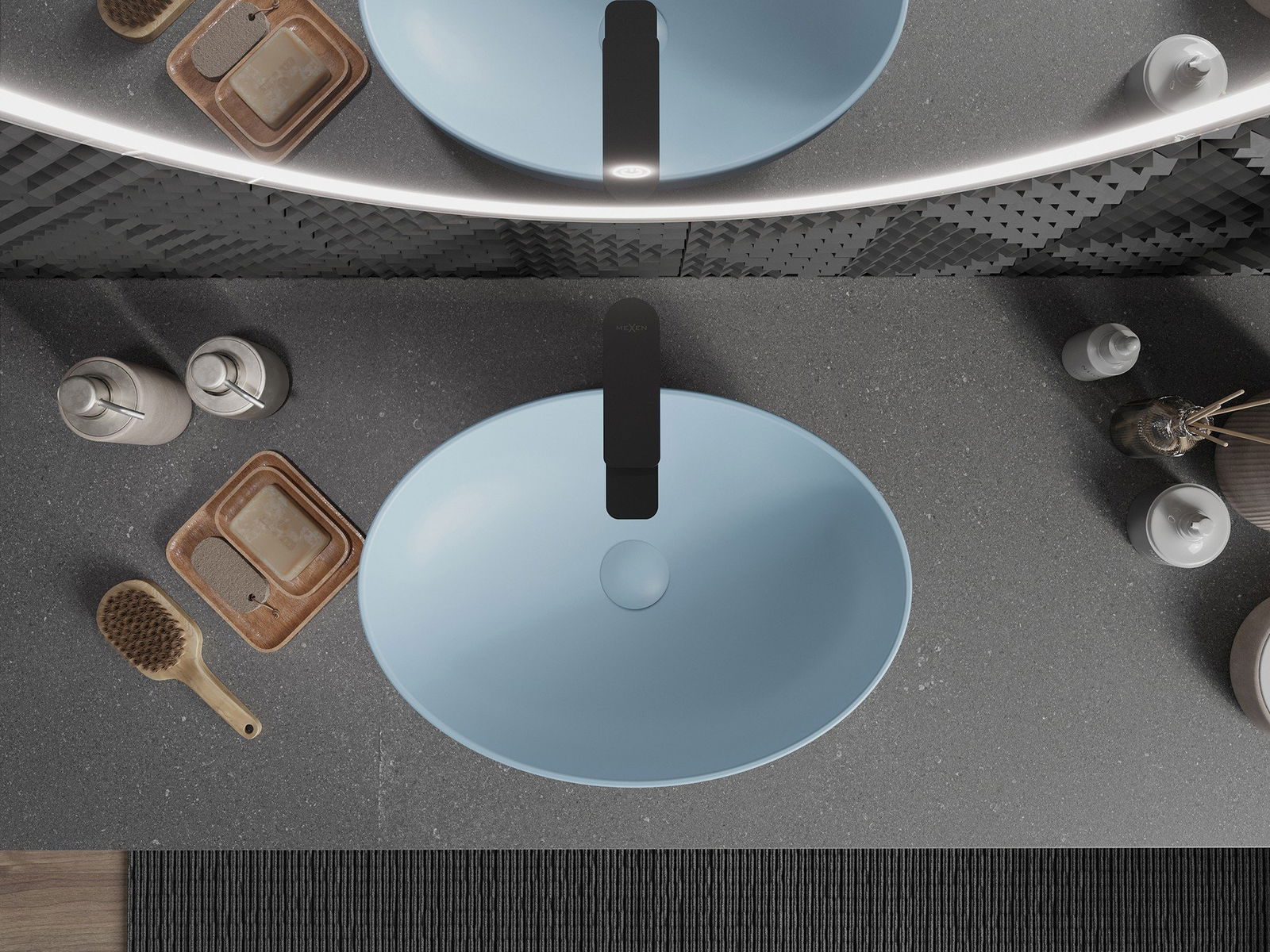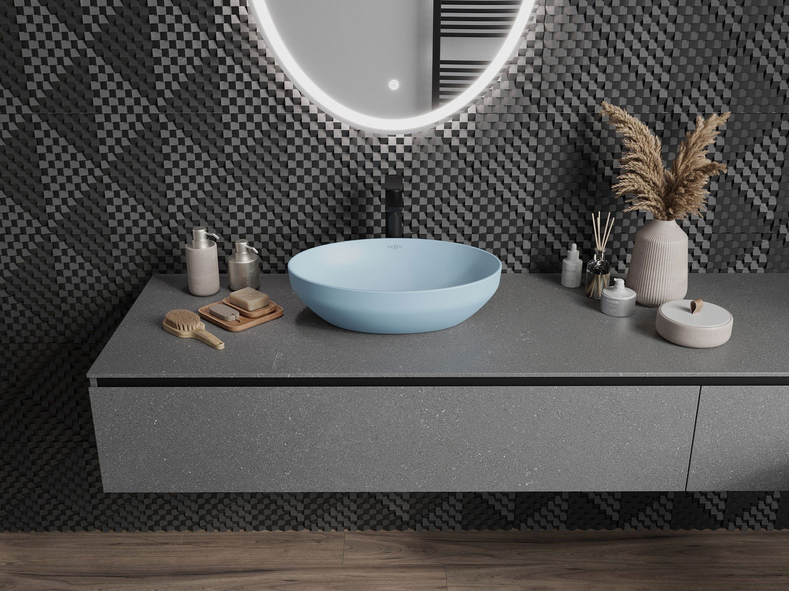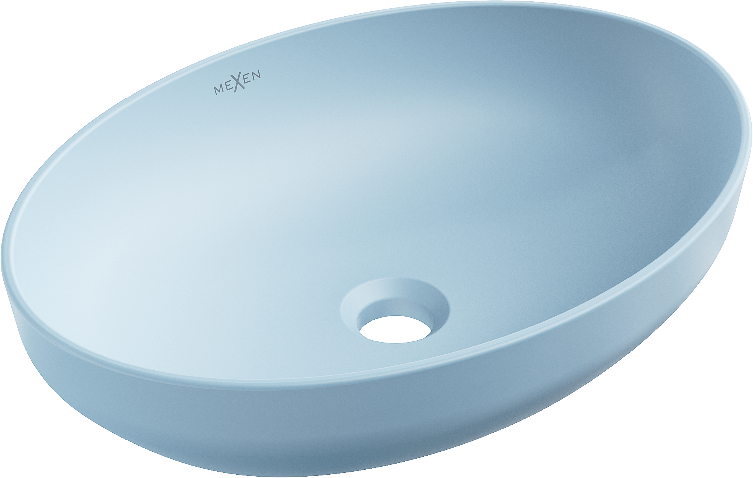 Mexen Cornelia is an elegant countertop basin measuring 50 x 37 cm, distinguished by its unique blue matte finish. Made of high-quality sanitary ceramic, it not only provides a stylish appearance but also durability and ease of maintenance. The oval shape and lack of tap and overflow holes emphasize its modern design. Perfect for bathrooms, it combines functionality with aesthetics, creating an unforgettable space for users.