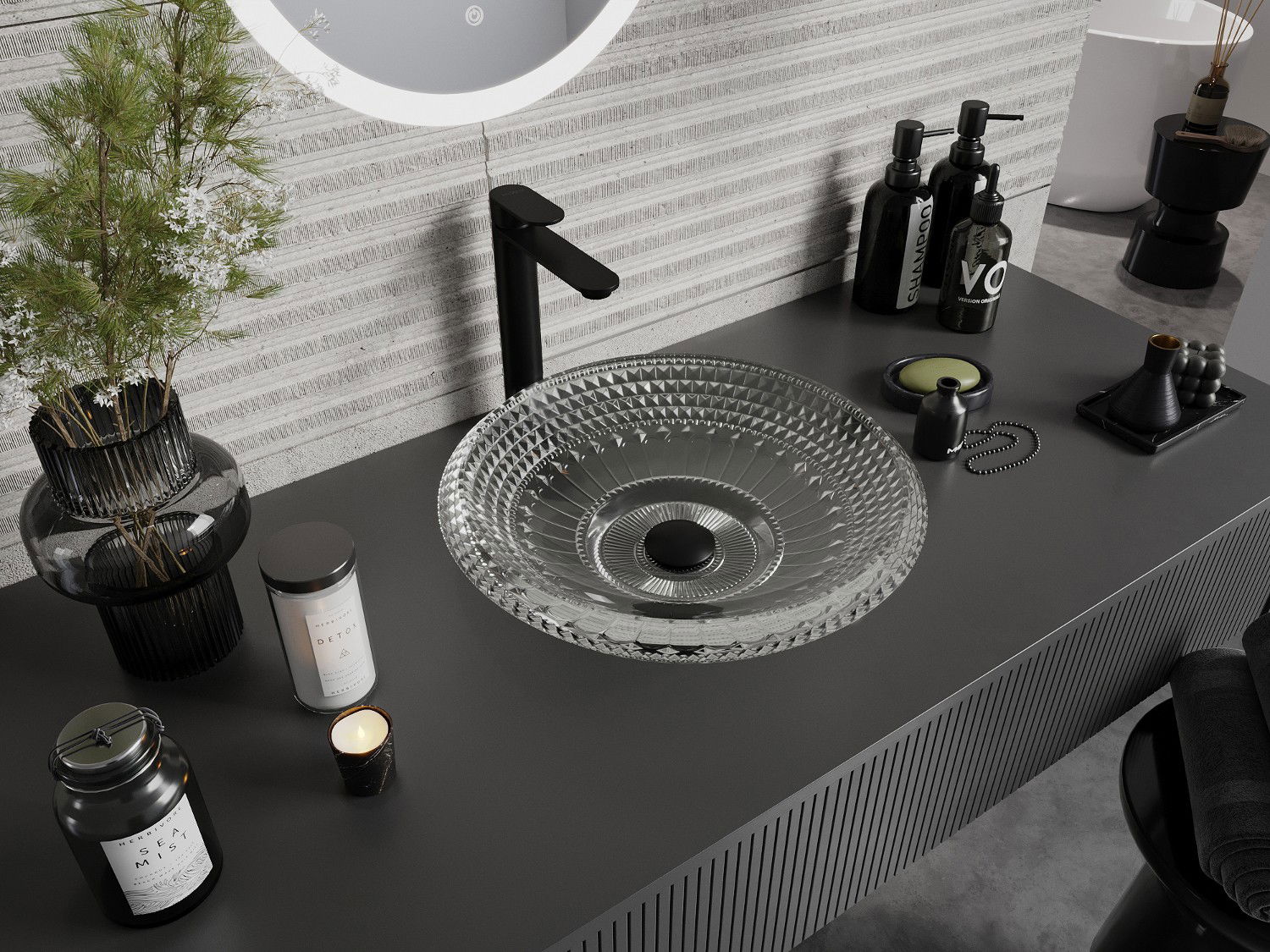 The sink is distinguished by a unique structure of crystals, giving it a unique and extremely effective look. Crystals shine in the light, catching the eye and adding elegance. A practical and stylish solution for every bathroom.