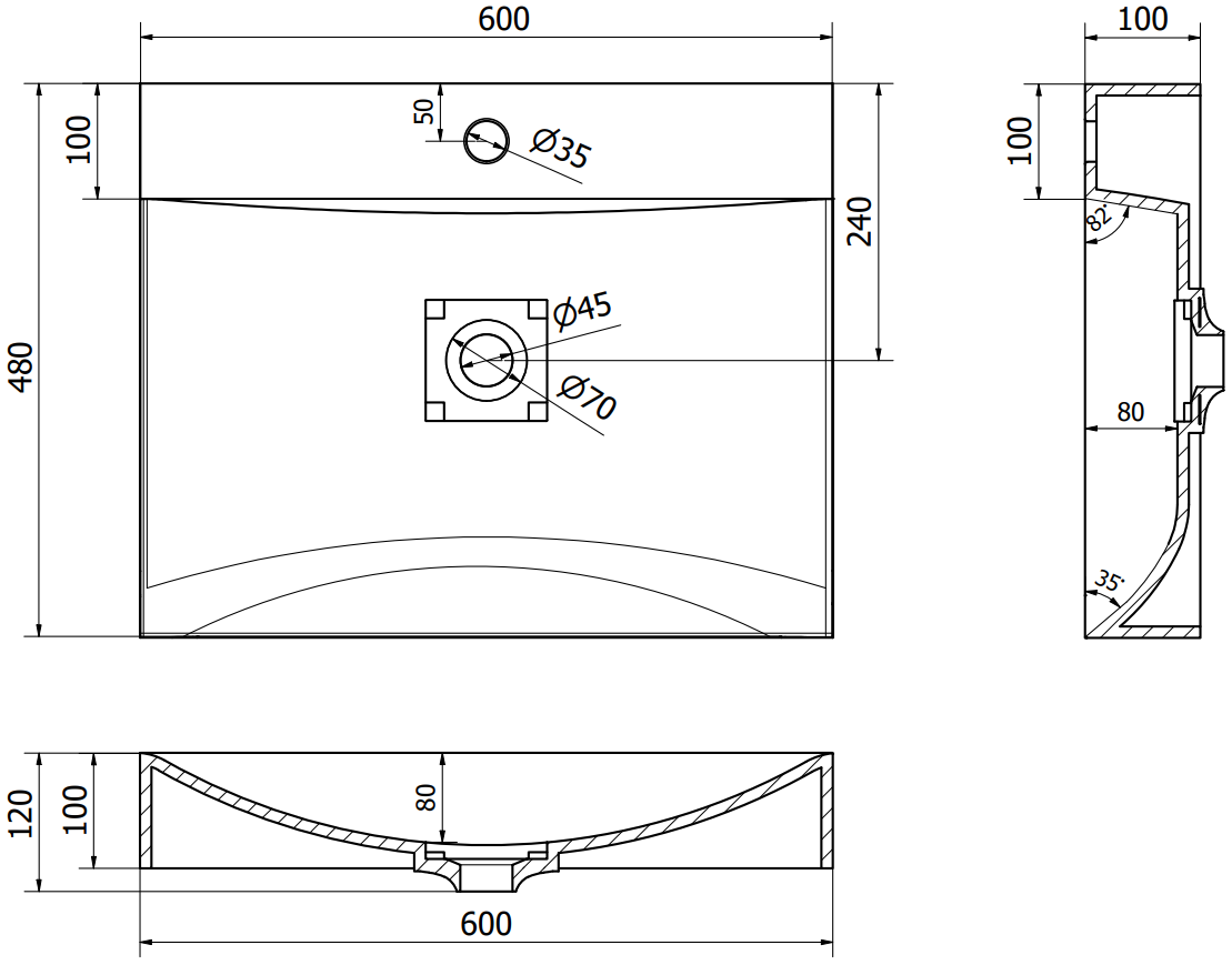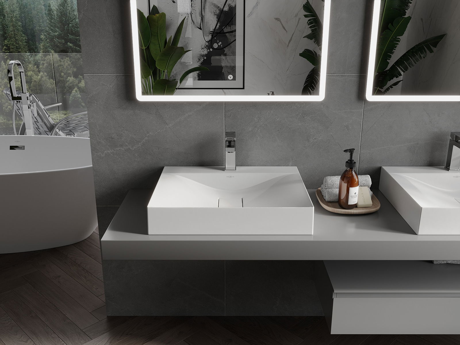 The sink has a hole in which we can mount the battery. This saves a valuable space in the bathroom and emphasize its aesthetics. This solution also allows you to easily keep clean around the sink.