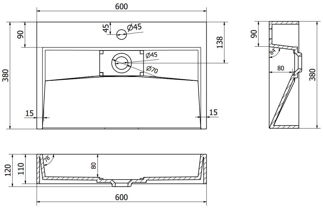 The sink has a hole in which we can mount the battery. This saves a valuable space in the bathroom and emphasize its aesthetics. This solution also allows you to easily keep clean around the sink.