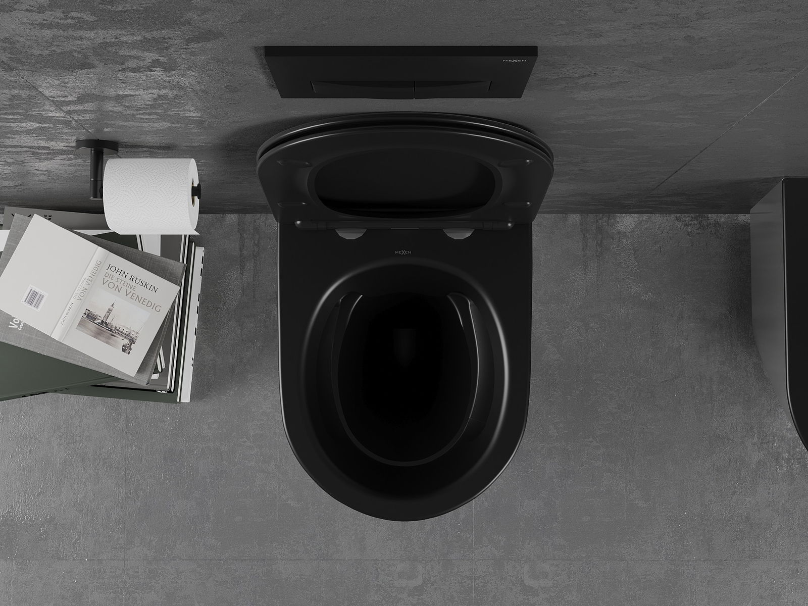 Rimless technology ensures free water flow throughout the bowl, making it easier to keep the WC bowl clean
