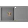 Mexen Leo 1-bowl granite sink with drainer 900 x 500 mm, black/silver metallic, gold siphon - 6501901010-73-G