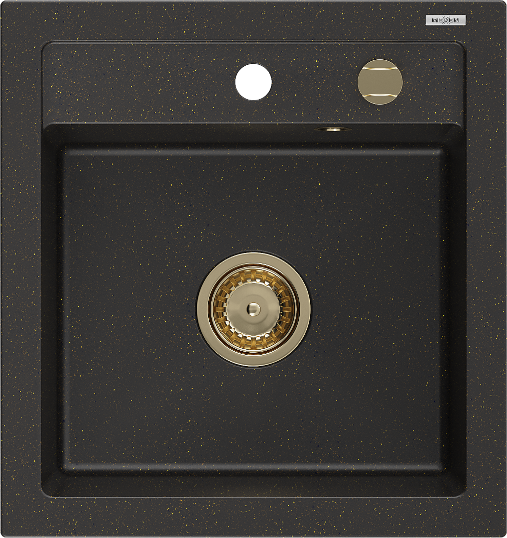Mexen Vito granite sink, 1-bowl 520 x 490 mm, black/gold metallic, gold siphon - 6503521000-75-G