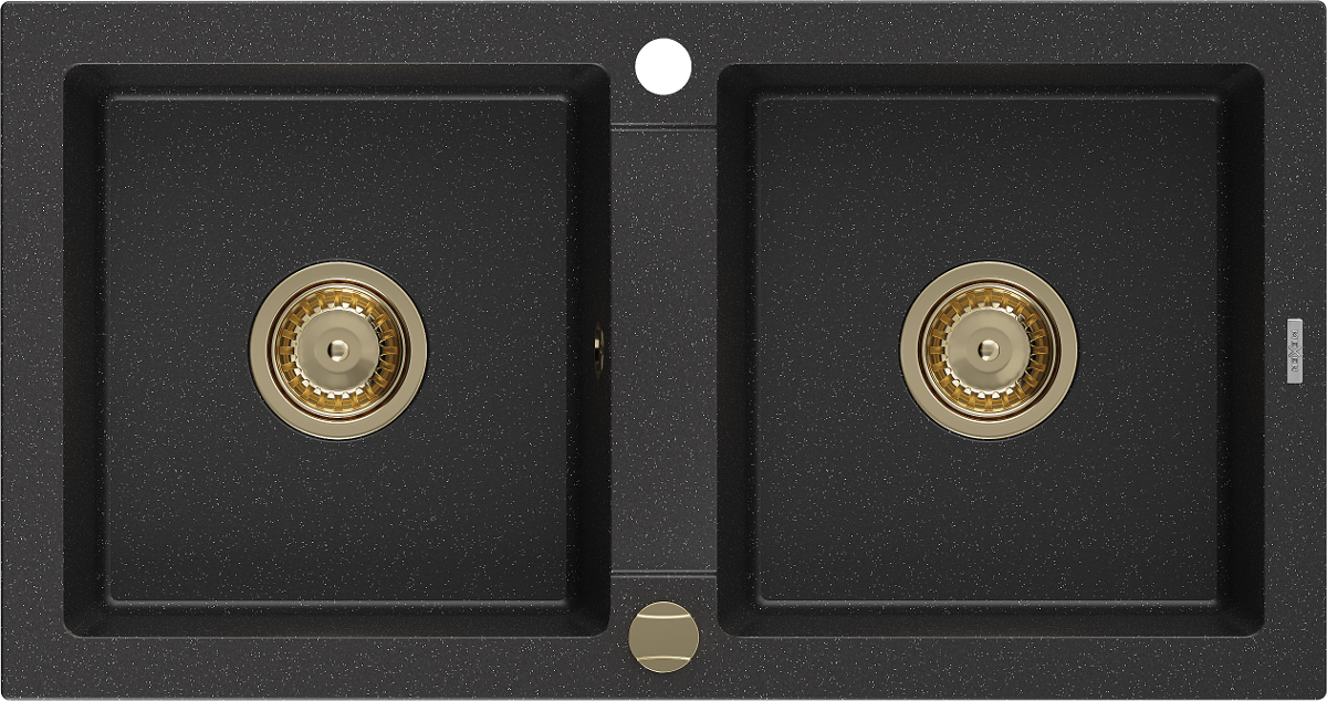 Mexen Mario granite sink 2-chamber 820 x 436 mm, black/silver metallic, gold siphon - 6504822000-73-G