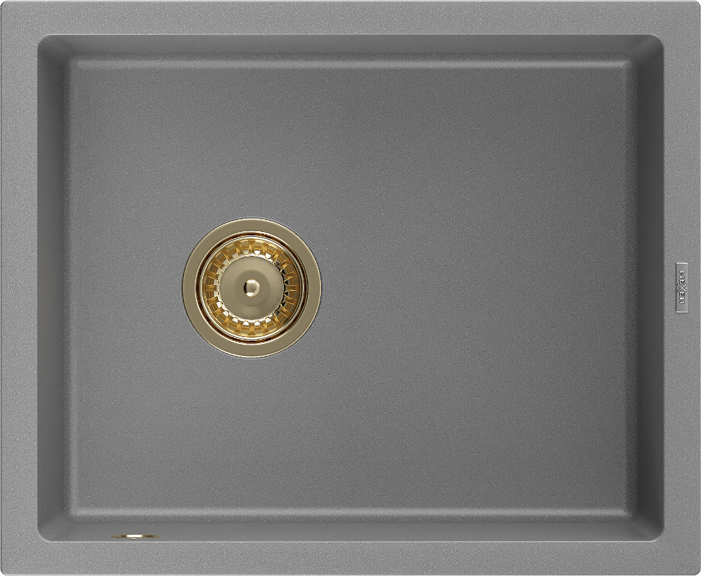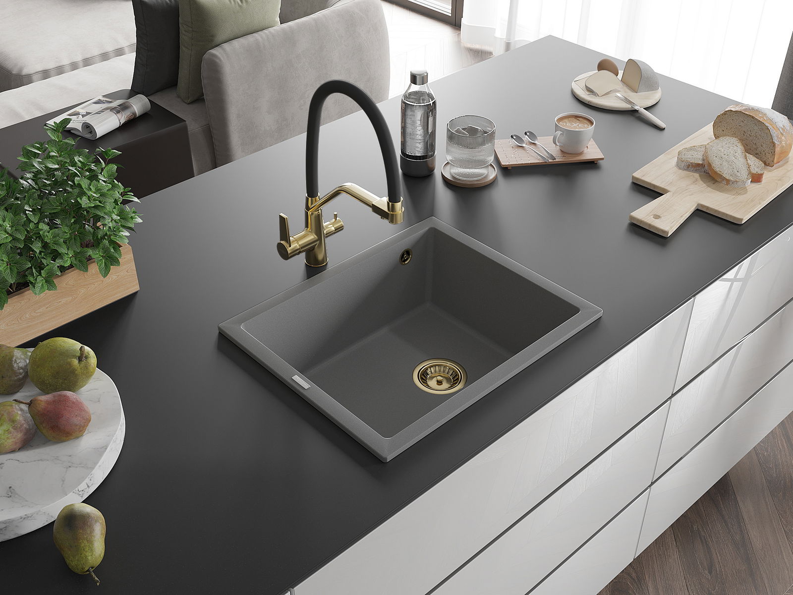 Mexen Pedro granite sink single-bowl 560 x 460 mm, grey, gold siphon - 6508561000-71-G