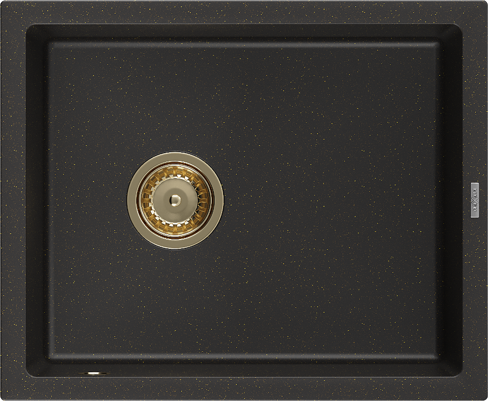 Mexen Pedro granite sink single-bowl 560 x 460 mm, black/gold metallic, gold siphon - 6508561000-75-G