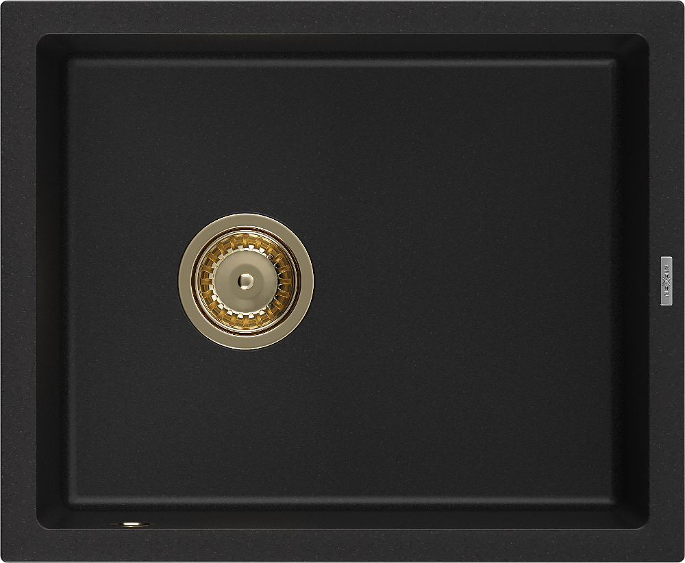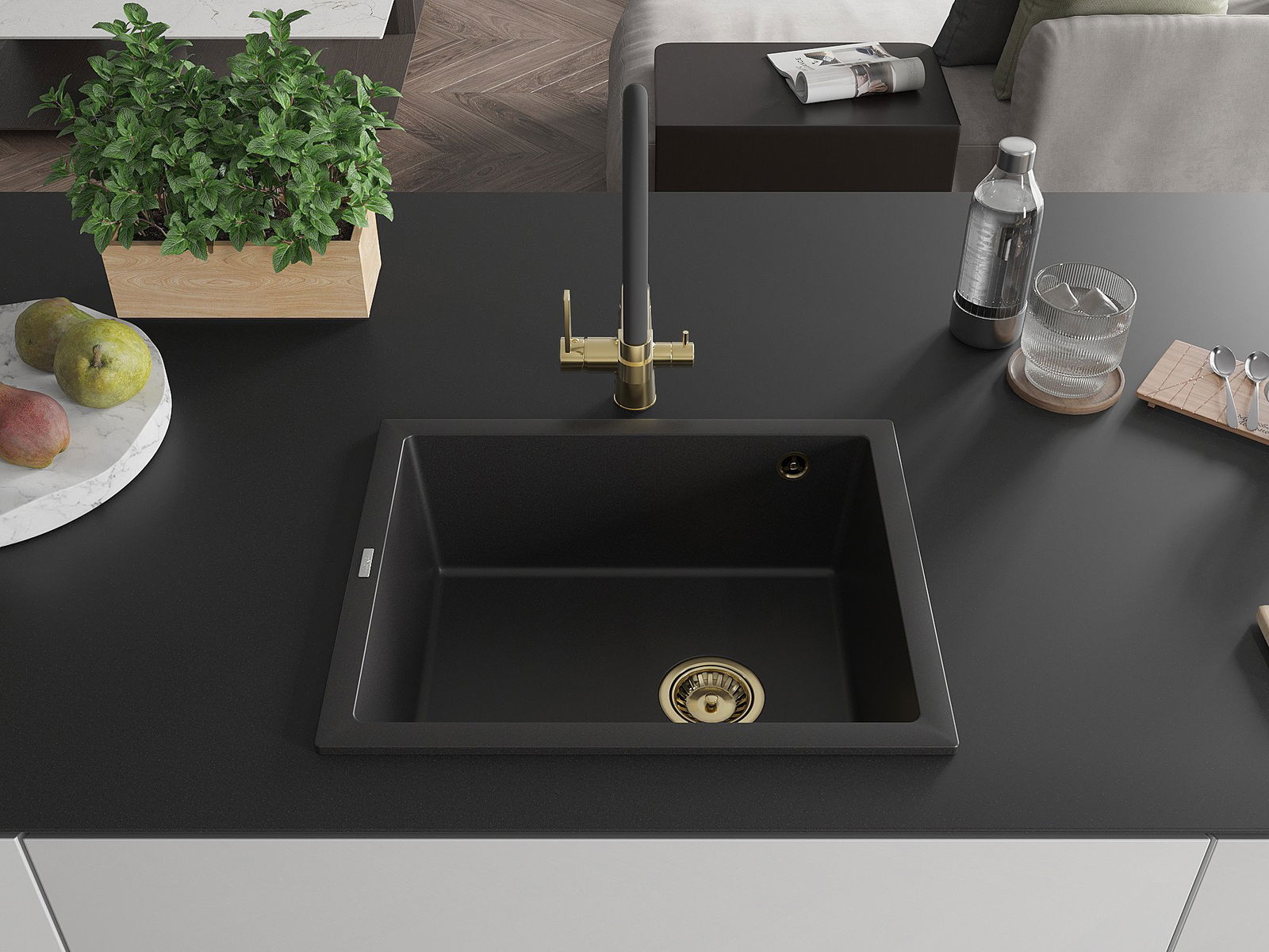 Mexen Pedro 1-bowl granite sink 560 x 460 mm, black, golden siphon - 6508561000-77-G