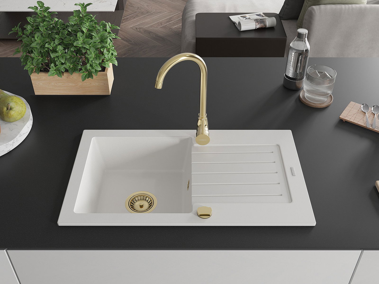 The surface of the sink is resistant to stains and discoloration, thanks to which it is easy to clean and retains its color for a long time. Aesthetic and practically complementing every kitchen.