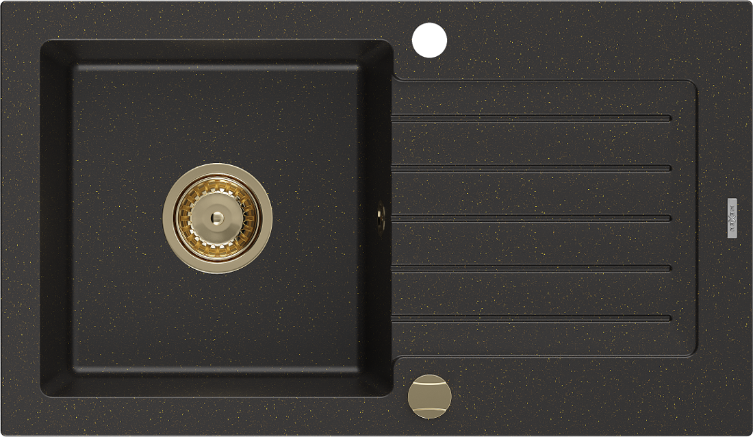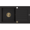 Mexen Pablo 1-bowl granite sink with drainer 752 x 436 mm, black/gold metallic, gold siphon - 6510751010-75-G