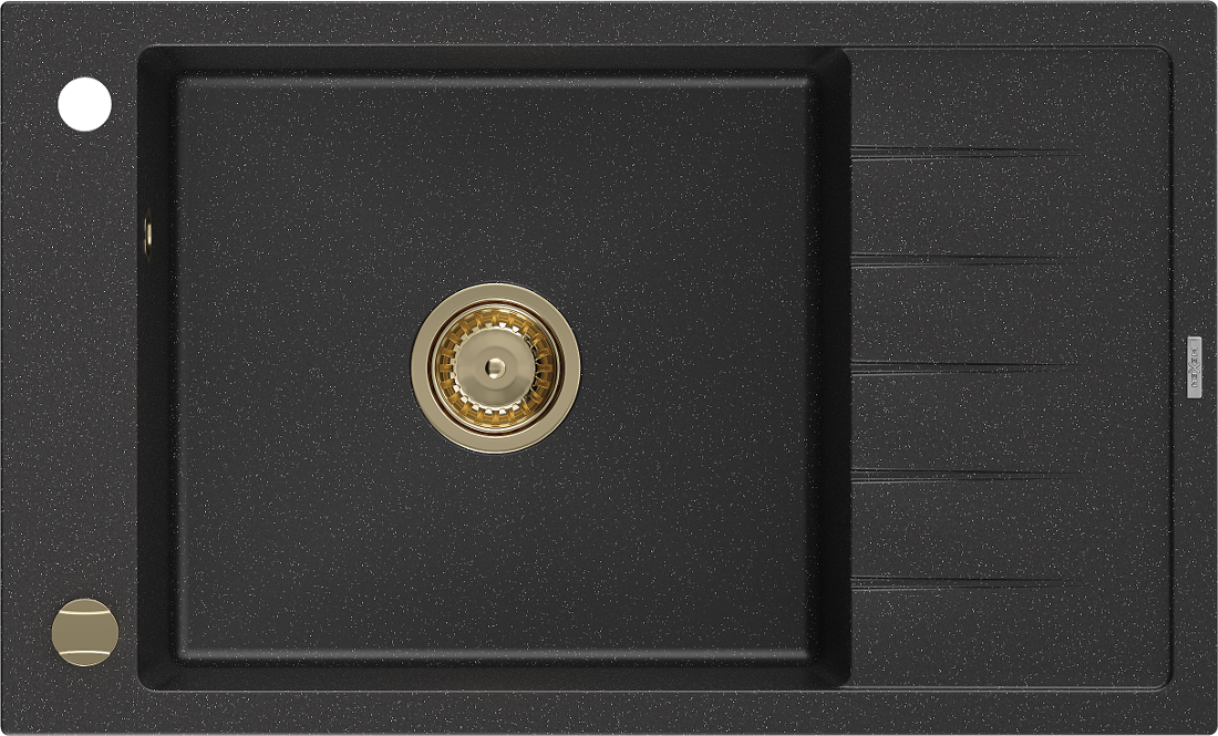 Mexen Elias granite sink 1-bowl with drainer 795 x 480 mm, black/silver metallic, golden siphon - 6511791005-73-G