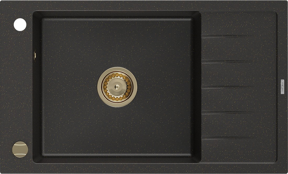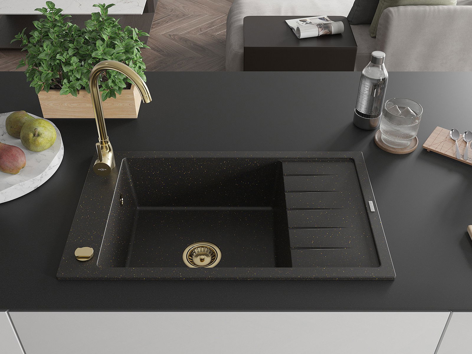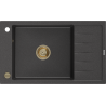 Mexen Elias granite sink 1-bowl with drainer 795 x 480 mm, black/gold metallic, gold siphon - 6511791005-75-G