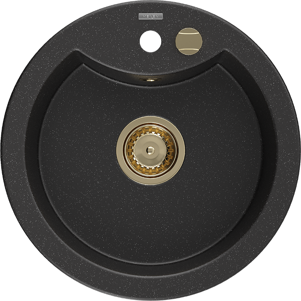 Mexen Diego 1-bowl granite sink 488 x 480 mm, black/silver metallic, gold siphon - 6512481000-73-G