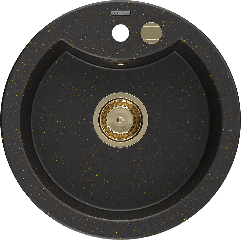 Mexen Diego granite 1-bowl sink 488 x 480 mm, black/gold metallic, gold siphon - 6512481000-75-G